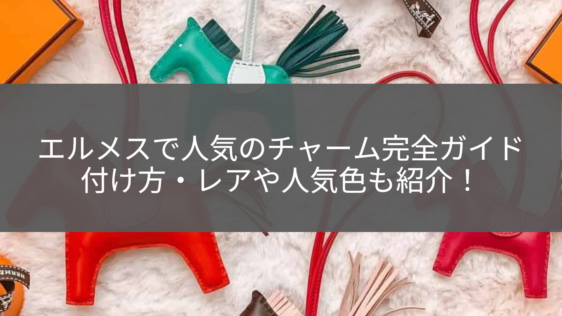 SNSで見かけたり、街ゆくお洒落な人が手にしていたりする、素敵なエルメスのバッグ。その傍らに添えられた愛らしいチャームに目を奪われ、「自分も手に入れてみたい」と感じる方も多いのではないでしょうか。 しかし、いざ探してみるとロデオやペガサス、ムートン素材の犬(バディ)など種類が多く、どれが自分に合うのか迷ってしまいます。また、一部で囁かれる「ダサい」という評価を不安に思うかもしれませんが、実は付け方のコツさえ押さえれば、バッグの品格を一段と高めてくれる最強のパートナーになるのです。 本記事では、2026年最新のトレンドを踏まえ、エルメスの人気チャームをご紹介します。レアなチャームや人気色についても解説していますので、あなただけの特別なチャームを見つけるヒントとなれば幸いです。 1.エルメスのチャームが人気の理由 エルメスのバッグを手に入れたら、次に欲しくなるのが「バッグチャーム」です。SNSでもバーキンやケリーに愛らしいチャームを添えた投稿が溢れており、その人気は衰えるところを知りません。人気の背景には、単なるアクセサリーの枠を超えたエルメス独自のこだわりがあります。 1-1.メゾンの遊び心と職人技の単なる飾りではないオブジェ エルメスにとってチャームは、単なるバッグの付属品ではなく、一つの独立した「オブジェ(芸術品)」です。バッグ本体と同じ最高級のレザーを使用し、熟練の職人が一つひとつ手作業で仕立てている点にあります。馬具工房として始まったエルメスの伝統を受け継ぎつつ、そこに「遊び心」を加えてミニチュア化したチャームは、職人の高度な技術があってこそ成し遂げられる造形美です。 1-2.エルメスだからこそのブランド力と揺るぎない資産価値 エルメスのチャームが支持されるもう一つの大きな理由は、圧倒的なブランド力に伴う「資産価値」の高さです。エルメスの製品は、その希少性から中古市場でも価格が落ちにくいことで知られています。 特にロデオやペガサスといった人気のチャームは、ブティックに足を運んでも滅多に出会えない入手困難なアイテムです。そのため、二次流通市場では定価以上のプレミア価格で取引されることも珍しくありません。人気色やレアなモデルであれば、数年愛用した後でも高い換金性を維持できるため、安心してコレクションを楽しめるのがエルメスならではの強みと言えるでしょう。 2.エルメスの人気チャーム10選 エルメスのチャームには数多くの種類がありますが、まずはこれだけは押さえておきたい王道から、SNSで話題のモデルまで、特に人気の高い10選を詳しくご紹介します。 2-1.ロデオ エルメスのチャームの中で、不動の人気を誇ります。その名の通り、愛らしい木馬をモチーフにしており、ブランドのルーツである馬具への敬意が込められたメゾンを象徴するアイテムです。 最大の特徴は、最高級ラムスキン「アニョー・ミロ」を使用した、吸い付くような柔らかな手触りです。内部に綿を詰めることで生まれるふっくらとした立体感は、機械による大量生産では決して出せない、職人の手作業ならではの温かみを感じさせます。 2-2.ロデオ ペガサス 2021年の登場以来、通常のロデオを凌ぐ入手困難度となっています。伝統的なロデオのフォルムに翼を授けた幻想的なデザインは、エルメスの持つ自由な想像力を象徴しています。翼の部分に本体とは異なるカラーを配したものが多く、バッグに添えるだけでパッと華やぐ躍動感を与えてくれます。 通常のロデオよりもさらにレア度が高く、エルメスのブティックに足を運んでも滅多に出会えません。「いつかは手に入れたい」と願うファンが世界中に存在する、憧れのチャームとなっています。 2-3.バディ(犬) フォックステリアをモチーフにした「バディ」は、エルメスのチャームの中でも異彩を放つ、ふわふわとした質感の愛らしいモデルです。レザー製品特有の硬質な美しさに、ムートンの柔らかな温かみが加わることで、バッグ全体の印象をぐっと優しく、親しみやすいものに変えてくれます。 2-4.ケリートゥイリー メゾンのアイコンバッグ「ケリー」を、手のひらに収まる極小サイズで完璧に再現した人気チャームです。単なるミニチュアではなく、実際にフラップを開閉でき、シルクのツイリーがハンドルに巻き付けられているという、熟練職人が織りなす精密な作りが特徴です。 「バッグの中に、さらに小さなバッグを付ける」という贅沢な遊び心は、エルメス愛好家にとってステータスともなっています。 2-5.ジージーサバンナ サバンナに生きるシマウマをモチーフにした「ジージーサバンナ」は、パッと目を引く独創的なデザインで注目を集めています。何層にも重ねられたレザーがシマウマのたてがみを立体的に表現しており、職人のカッティング技術の高さが際立つ一品です。実際にバッグに付けてみると驚くほど馴染みが良く、周囲と差をつけたい大人の女性から高い人気を得てい