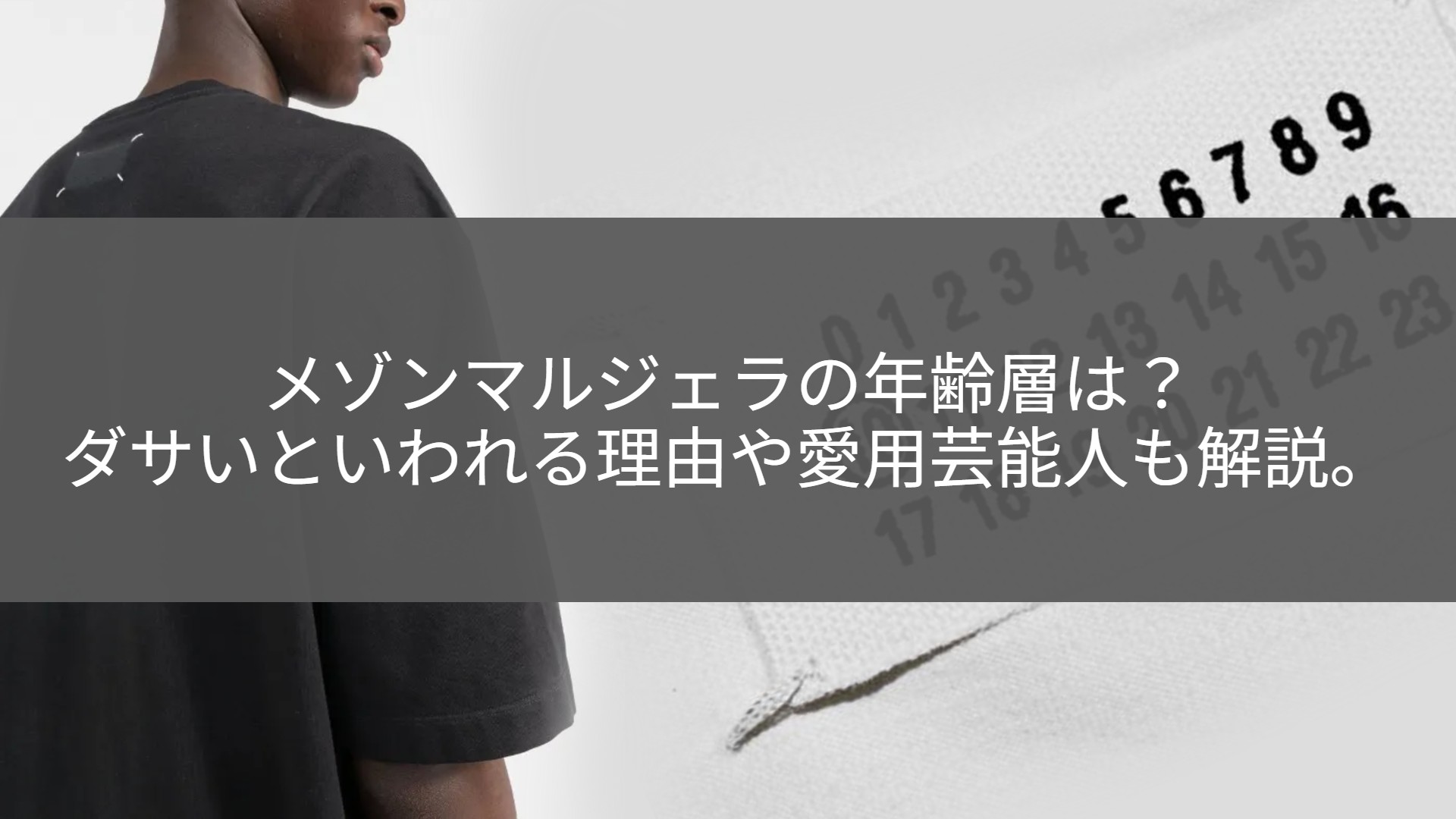 シンプルなデザインなのに、なぜか目を引く不思議な存在感を放つ「メゾンマルジェラ」。かっこいい系なブランドなだけに、欲しいけどなかなか手が出ない方もいるのではないでしょうか? そこで、本記事では、メゾンマルジェラを愛用する年齢層から、性別を問わず多くの人を惹きつける魅力の秘密を解説。さらに、まず手に入れるべき定番の名品や、愛用している芸能人も紹介したいと思います。ぜひ参考にしてください。 1.メゾンマルジェラの購入ユーザー年齢層 ファッションの世界で独自の地位を確立し、多くの人々を惹きつけているメゾンマルジェラ。憧れのブランドではあるけれど、自分の年代に合うのかどうか、少し不安に感じることもあるでしょう。ここでは、メゾンマルジェラを愛用する年齢層について詳しく紹介したいと思います。 1-1.男性ユーザーの多くはトレンドに敏感な20~40代が中心 メゾンマルジェラのアイテムを最も多く購入しているのは、20代、30代、40代です。ブランド名を大きく主張するのではなく、4本のステッチでさりげなくアイデンティティを示すブランドの姿勢は、内面的な価値観と共鳴するのでしょう。社会人になり経済的な余裕も生まれ、一過性のトレンドではない、長く付き合える本質的な価値を持つモノを求める人にとって、メゾンマルジェラは理想的な選択肢となるのです。 1-2.女性ユーザーは20代、30代が最も多い印象 女性の間でも、20~30代を中心にマルジェラを選ぶ人が多い印象があります。財布などの小物が特に人気を集めているようです!ちなみに...筆者の友人にも何人かマルジェラの財布を使ってる方がいます... シンプルな中に知性を感じさせるフォルムや、控えめでありながら凛とした美しさ。声高ではないのに、確かな存在感を放つ“静かなモード”が、この世代の女性たちに深く響いているのではないでしょうか。 1-3.20〜50代まで幅広い世代に支持 メゾンマルジェラの支持層は20代、30代に集中しているものの、それだけにとどまりません。40代や50代の大人たちの間でも、マルジェラの“控えめな中の個性”に惹かれる人が多いです。長年ファッションと向き合ってきた世代だからこそ、その奥に潜む哲学や美意識をより深く感じ取れるのかもしれません。年齢を重ねても自然に馴染み、着る人の人生に寄り添う――マルジェラは、そんな“時を超えて生きるブランド”として、今も多くの人の心を掴み続けています。 2.【なぜ人気?】男性を惹きつけるメゾンマルジェラの魅力 流行がめまぐるしく移り変わる現代において、なぜメゾンマルジェラはこれほどまでに男性の心を掴んでいるのでしょうか。ここでは、男性を惹きつけるメゾンマルジェラの魅力について、3つの視点から紹介したいと思います。 2-1.知的な印象を与える「4ステッチ」 メゾンマルジェラの魅力を語る上で欠かせないのが、ブランドの象徴である「4ステッチ」です。主に財布やカードケースといった小物類や、一部のウェアの背面に施された4本の白い糸は、ブランド名を誇示しない匿名性の哲学を体現しており、所有者に静かな自信と知的な印象を与えます。 元々、ブランドタグを簡単に取り外せるようにという意図で付けられた仮留めの糸でしたが、今ではブランドを象徴するアイコンとなりました。大きなロゴでブランドを主張するのではなく、控えめなステッチに価値を見出す姿勢は、表面的なものに惑わされない成熟した感性に響くでしょう。 2-2.常識を覆す独創的なデザイン メゾンマルジェラの真骨頂は、衣服の常識を大胆に覆す独創的なデザインにあります。その根幹をなすのが、「デコンストラクション」と呼ばれるデザイン手法です。デコンストラクションとは脱構築を意味し、意図的に裏地を表面に出したり、縫い代をデザインの一部にしたりと、本来隠されている構造を可視化させて再構築するアプローチです。 このような手法から生み出される服は、単に奇抜なのではなく、服の本質とは何か、美しさとは何かを問いかける哲学的な深みも持っています。マルジェラではブランドを代表する「タビ」シューズが良い例でしょう。日本の伝統的な履物である足袋から着想を得た、つま先が二つに分かれたデザインは、発表当時に大きな衝撃を与えましたが、今ではメゾンのアイコンになりました。 このような既成概念を打ち破るデザインは、アート作品を身にまとうような感動を体験させてくれます。 2-3.流行に左右されない普遍的な価値 メゾンマルジェラのアイテムは、一過性のトレンドを追い求めるのではなく、長く愛用できる普遍的なデザインと品質を備えているため、年齢や性別を問わず、本質的な価値を求める人々から支持を集めています。 シーズンごとに目まぐるしくデザインが変わる多くのブランドと異なり、メゾンマルジェラは定番のアイテムを大切に育て、少しずつアップデートを重ねていくスタイルを貫いています。その背景には、時代を超えて共感を