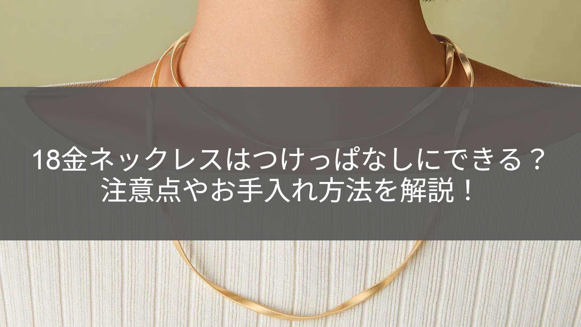 18金のネックレスは、肌なじみの良さと高級感から日常使いしやすいジュエリーとして人気です。しかし「つけっぱなしでも平気?」という疑問を持つ人は多いでしょう。 毎日身につけていたいアイテムだからこそ、変色や傷、お風呂や寝るときの着用など、気になる点は押さえておきたいところです。実際、18金は金属の中でも錆びにくく、汗や水に強い素材のため、日常生活でのつけっぱなしは基本的に問題ありません。ただし、環境によっては劣化やくすみを招くこともあるため注意が必要です。 この記事では、18金ネックレスをつけっぱなしにできるシーンや避けたほうがいい場面、お手入れ方法まで詳しく解説していきますので、是非最後までご覧ください。 1.【K18】18金ネックレスはお風呂でつけっぱなしにできる? 結論からいえば、18金製のネックレスは錆びにくく変色にも強い金属のため、短時間のお風呂程度であれば大きな問題はありません。 水や汗に含まれる成分で急に劣化することはほとんどなく、普段使いのアクセサリーとして非常に扱いやすい素材です。ただし、18金は75%の純金に25%の割金(わりがね)と呼ばれる銀や銅などを配合して作られています。金自体は変色しにくい性質を持ちますが、この割金にシャンプーやボディソープなどの成分が毎日のつけっぱなしで継続的に付着すると表面がくすんだり、輝きが失われることがあります。 また、入浴中は湯気や熱によって皮脂汚れが浮き出やすく、長期間続けると微妙な変化が出ることも。基本的には安心して使えますが、気になる人はお風呂の際に一度外しておくとより安心です。では、具体的にどんなシーンならつけっぱなしにしても大丈夫なのでしょうか。次章にて解説していきます。 2.18金ネックレスをつけっぱなしにできるシーン 18金のネックレスは、日常生活の中で気軽に身につけられるのが魅力です。丈夫で変質しにくい性質を持っているため、忙しい日々の中でも外す手間が少なく、自然に使い続けられます。 ここでは、その中でも18金のネックレスを安心して着用できる主な場面を紹介します。 2-1.普段の生活(買い物・通勤など) 18金のネックレスは、普段の生活の中で気兼ねなく身につけられる素材です。買い物や通勤などの日常生活では、特別なお手入れをしなくても問題ありません。金自体が酸化や錆びの影響をほとんど受けず、長く使っても色味が変わりにくい特性を持っています。そのため、毎日の装いに取り入れても美しさを保ちやすく、気分や服装に合わせて楽しむことができます。上品な輝きがコーディネートを引き締めてくれるので、日常使いのジュエリーとしてぴったりです。 ただし、化粧品やヘアスプレー、香水などの成分が直接触れると光沢が鈍ることがあるため、使用前にネックレスを外すように心がけるとより安心です。 2-2.軽い運動や外出時 軽い運動や短時間のウォーキングなど、体を大きく動かさない場面でも18金のネックレスは問題なく着用できます。チェーンが繊細すぎるタイプでなければ、多少の動きや揺れで傷つく心配もほとんどありません。特にシンプルなデザインのものは引っかかりにくく、普段のライフスタイルにも馴染みやすいです。季節を問わず使いやすく、仕事帰りの食事やお出かけなどにも自然に身につけられるため、18金はまさに“日常に寄り添う素材”といえるでしょう。 とはいえ、どんなに丈夫な18金でも、すべての環境でつけっぱなしにしてよいわけではありません。特定の状況下では、成分の影響や摩擦によって変色やダメージが起こることもあります。次章にて、18金のネックレスを一時的に外したほうがいいシーンについて見ていきましょう。 3.18金ネックレスをつけっぱなしにしないほうがいいシーン 18金は丈夫で扱いやすい素材ですが、すべての環境で安心というわけではありません。特に水や薬品、強い摩擦といった外的要因が加わる場面では、表面の輝きに影響が出ることがあります。ここでは、できるだけ外しておくのが望ましい代表的なシーンを紹介します。 3-1.お風呂・温泉・プールなどの水に触れる環境 日常のシャワー程度であれば問題ありませんが、長時間お湯や水に浸かる環境では、ネックレスの表面に汚れや成分が残りやすくなります。特に温泉の硫黄成分や、プールの塩素は金属と反応しやすく、変色や曇りの原因になることも。 18金自体は錆びにくい素材ですが、割金(他の金属)が影響を受けて色合いが変わるケースがあります。また、熱い湯気で肌が柔らかくなり、チェーンが絡まったり切れたりするリスクもあるため、入浴前には外しておくのが無難です。 3-2.汗をかくような激しい運動や力仕事 ランニングや筋トレなど、体を大きく動かすシーンでは18金ネックレスの着用は控えましょう。強い動きによる摩擦や衝撃でチェーンがねじれたり、留め具が緩んだりするおそれがあります。 また、汗を多くかく環境では、皮膚の塩分や皮脂がネッ