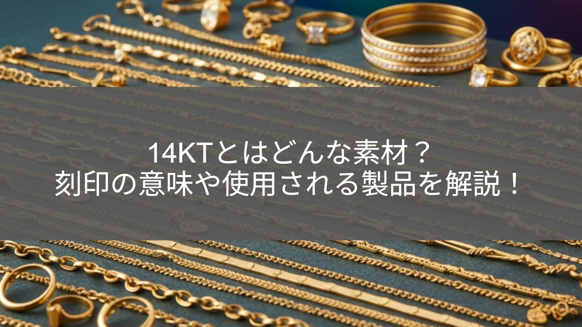 「14KT」という刻印。金製品を調べていると時々目に入る文字ですが、知っているようで意外と知られていないのがこの刻印です。K14や14金と数字が違うだけなのか、それとも全く別物なのか──最初はちょっと混乱してしまいますよね。 この記事では、14KTの意味や他の金の純度との違い、本物かどうかの見分け方、そして売却するときに役立つポイントまでをまとめて解説します。わかりやすく解説していきますので気軽に読み進めてみてください。 1.「14KT」刻印の意味とは? 「14KT」という刻印は、金製品の中で見かける表記のひとつです。でも、K14や14金という似た言葉もあるので、違いがあるのか気になってしまいますよね。実は14KTは難しい意味ではなく、金の純度を示すシンプルな表示です。まずは、この表記がどんな数値を表しているのか、基本から整理していきましょう。 1-1.14KT=K14や14金と同じ意味 14KTは、金の含有率が約58.5%であることを示す刻印で、K14や14金と同じ純度を表しています。ただし、表記の仕方にはいくつか種類があります。 ・K14 … 日本国内の金製品で多い表記 ・14K … 海外のジュエリーでよく見られる ・585(AU585)… 1000分率で表した場合の“58.5%が金”という意味 ・14KT … 海外表記の一種で、14Kと同じ意味 どれも示している純度は同じですが、国やメーカーによって使われる刻印に違いがあります。慣れないと別物に見えてしまいますが、「14KT=K14=14金」と理解しておけば問題ありません。 1-2.KTは「Karat/カラット」の略 KTは、金の純度を示すときに使われる「karat」の略です。ダイヤモンドの重さを表すct(carat)とは綴りが似ていますが、意味は全く別物。金の場合のkaratは“純度”を示す単位で、24を最大値として24分率で表されます。たとえば18KTなら24分の18が金、14KTなら24分の14が金という計算です。金の世界では一般的な表記ですが、読み慣れないと少し戸惑うかもしれません。 1-3.14KT以外の主な金の純度 金には14KT以外にもさまざまな純度があり、それぞれ特徴が異なります。代表的なものを一覧で整理すると次のとおりです。 ・24金 … 純度がきわめて高く、ほぼ純金とされるランク(含有率約99.99%) ・22金 … 金の割合が9割前後の高純度タイプ(含有率約91.7%) ・20金 … 8割ほどが金で構成されるもの(含有率約81.3%) ・18金 … 日常のジュエリーで最も見かける純度(含有率約75%) ・10金 … 金の含有量が4割ほどで、強度が高いのが特徴(含有率約42%) ・9金 … アクセサリーに使われることもある低めの純度(含有率約37.5%) ・8金 … 金の割合が約3割強の素材(含有率約33.3%) 数字が大きいほど金の割合が多く、色味も濃くなります。一方、数字が下がるほど割金の割合が増えるため、硬さが増して日常使いしやすい側面もあります。どの純度が適しているかは、用途やデザイン、価格帯によって自然と選び方が変わってきます。 2.14KTの特徴 14KTは“ちょうどいい”バランスが魅力の素材です。純金ほど柔らかすぎず、かといって安っぽくもない。そのほどよい性質から、ジュエリーや小物の素材として広く選ばれています。ここでは、14KTが実際にどんな特性を持ち、どんな場面でその魅力が活きるのかを整理していきます。 2-1.適度な硬さで耐久性が高い 14KTは金の含有率が約58.5%で、残りは銀や銅などの金属を合わせた合金です。この“割金”のおかげで純金よりも硬さが増し、日常使いに強いというメリットがあります。指輪やネックレスのように毎日身につけるアイテムは、どうしても細かな衝撃を受けやすいものですが、14KTなら硬く耐久性も高いので、過度な気遣いをせずに使いやすいのが特徴です。扱いやすさと金の上品さを両立できる点が、多くの人に選ばれている理由といえます。 2-2.色味が落ち着いていて普段使いに最適 14KTは18金や24金と比べると、やや控えめで落ち着いたゴールドカラーになります。派手すぎず、かといって地味でもない、程よい存在感が魅力です。ビジネスシーンから日常のコーディネートまで馴染みやすく、シンプルなデザインでも自然と品よく仕上がるのが14KTの良いところ。普段の装いにさらっと取り入れたい人には、特に相性の良い素材です。 2-3.24金や18金よりもリーズナブルで手に取りやすい 近年ニュースでも金相場の高騰を見る機会が増えてきました。金の価格は純度が高いほど上がるため、24金や18金はどうしても購入時は高額になりがちです。その点、14KTは金の割合が少ない分、価格帯が少し抑えめ。初めて金製品を選ぶ人でも手に取りやすく、デザインの選択肢も豊富です。「本物の金が欲しいけれど予算も大事」という場面では、14KTがちょうどいい落としどころになるケースが多いです。 こうした特徴があるからこそ、14KTはジュエリーに限らず、さまざまなアイテムの素材として選ばれています。次章では、実際にどんな製品に使われているのかを見ていきましょう。 3.14KTが使用される主な製品 金製品は、ジュエリーのイメージが強いかもしれませんが、実は