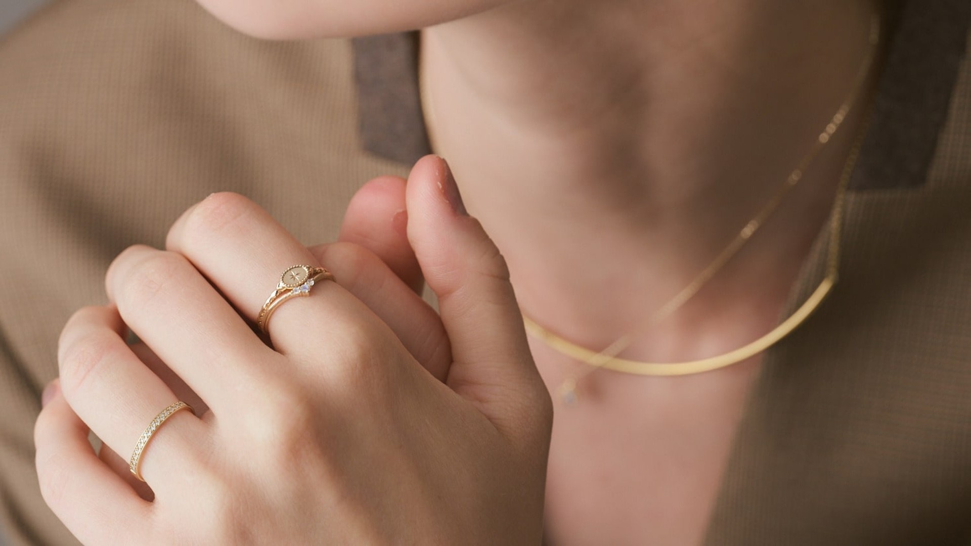 華奢なリングを指先にいくつも重ねたり、長さの違うネックレスを組み合わせたり、まるで洋服を選ぶようにジュエリーコーディネートを楽しめる点が大きな魅力です。K10ゴールドなど高品質な素材が多く用いられ、柔らかな輝きと手が届きやすい価格設定が、本格的なジュエリーを初めて選ぶ人にもぴったりです。