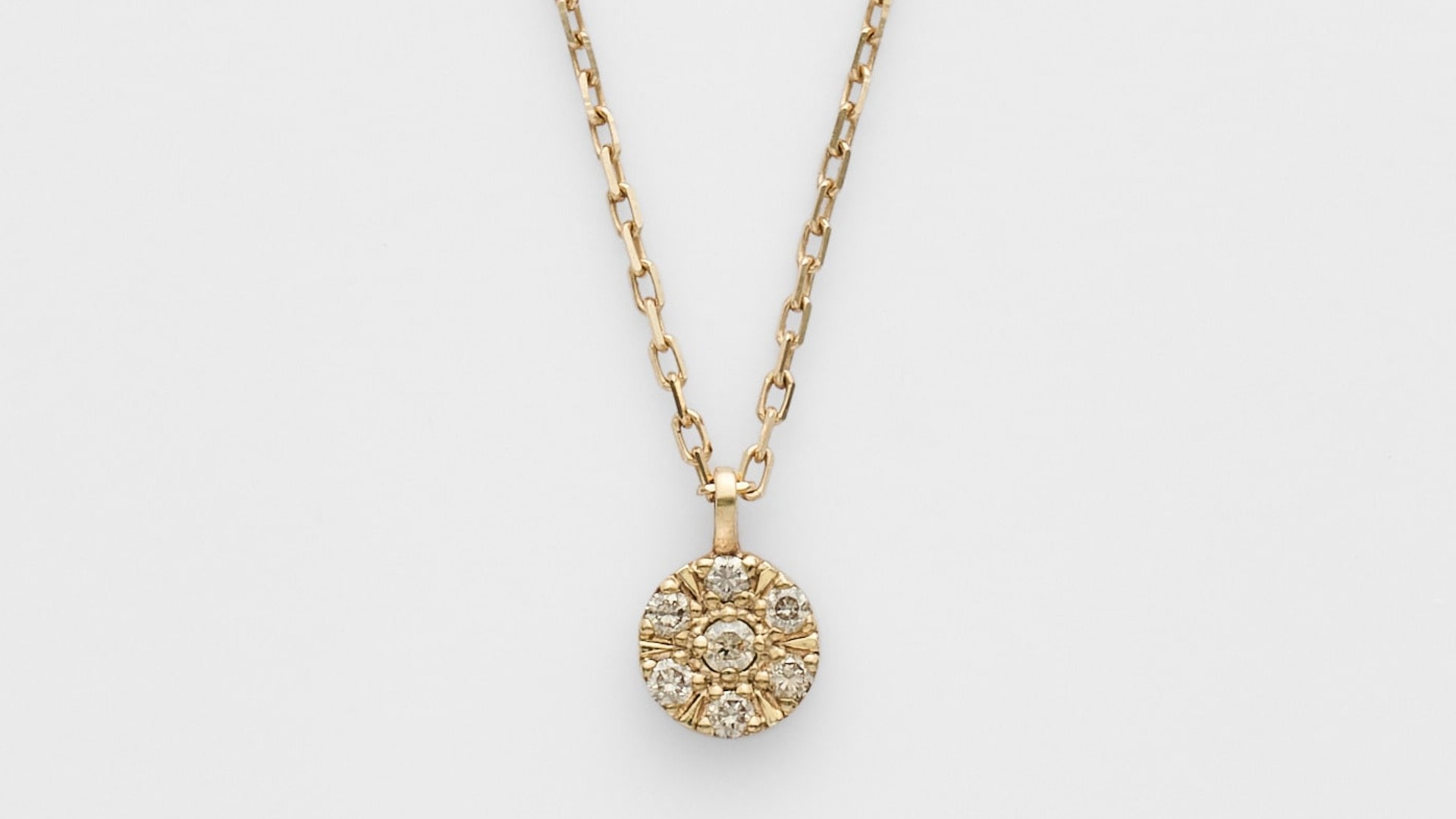 胸元に上品な輝きを添えるK10ダイヤモンドネックレスは、アガットを代表する名作です。中央のダイヤはミル打ちで縁取られ、上品に存在感を放つデザイン。周囲のダイヤには地金を組み合わせることで、石と調和した一体感のある仕上がりになっています。