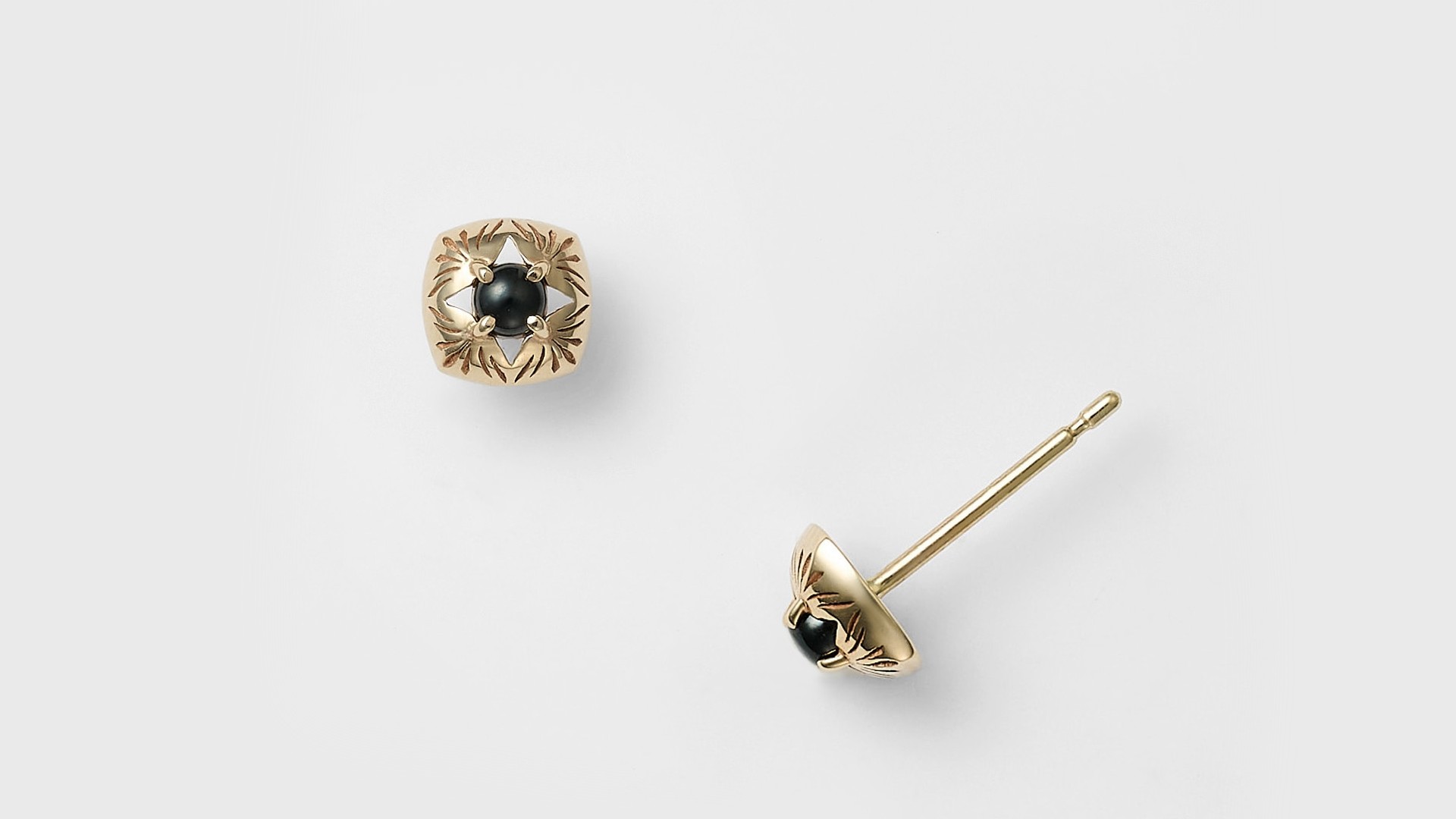 耳元にモダンで洗練された印象を与えるK10スピネルピアスは、ミニマルな美しさが光るアイテムです。ブラックスピネルを使用したピアスは、つるんとしたカボションカットが施されることで、石そのものの持つ魅力を最大限に引き出しています。