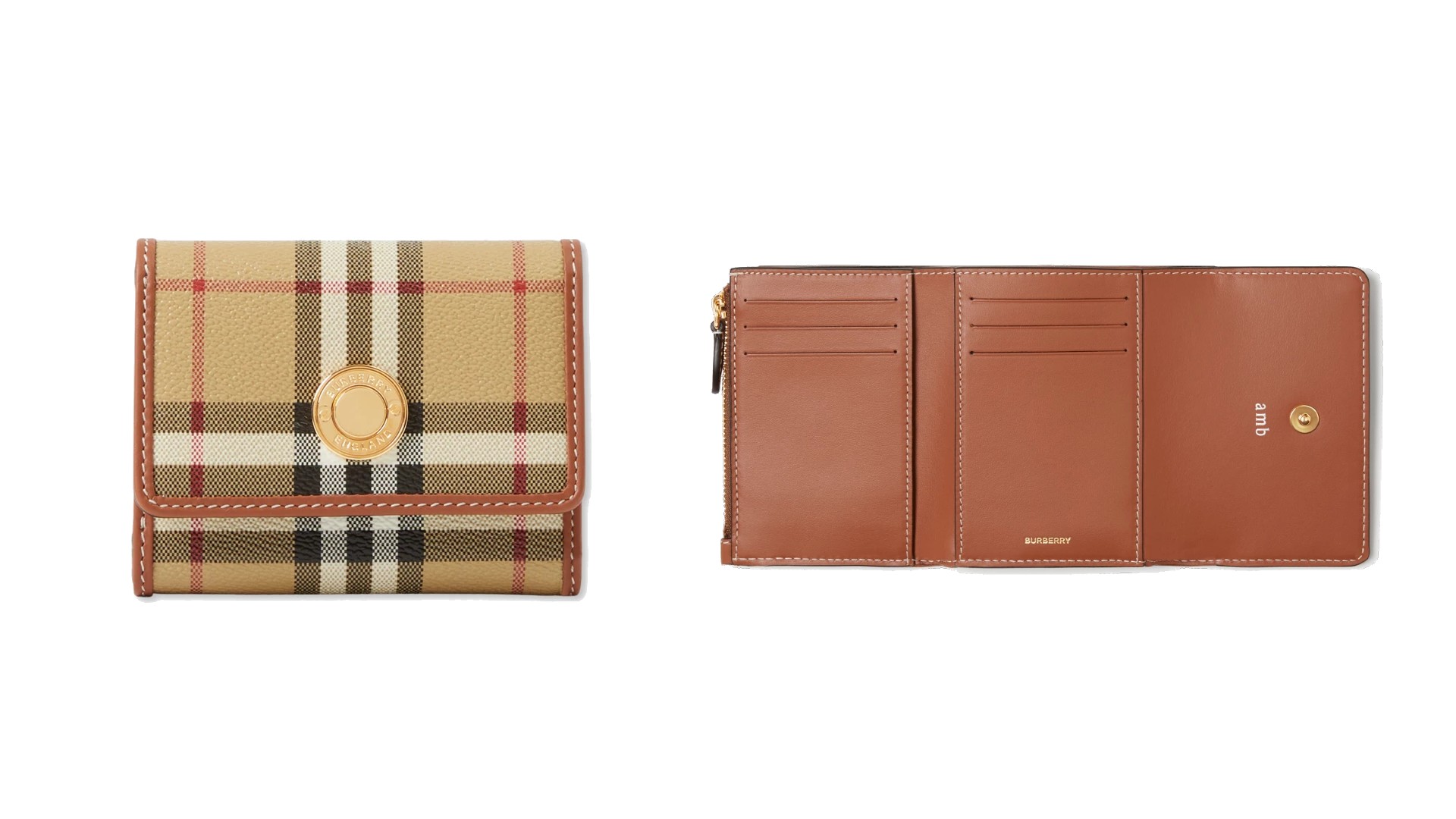 バーバリーらしいチェック柄を楽しめるコンパクトな三つ折り財布です。サイズは11.5 x 3 x 9cmで、6枚分のカード収納やジップ付きのコイン入れ、紙幣入れなど機能性も充実しています。