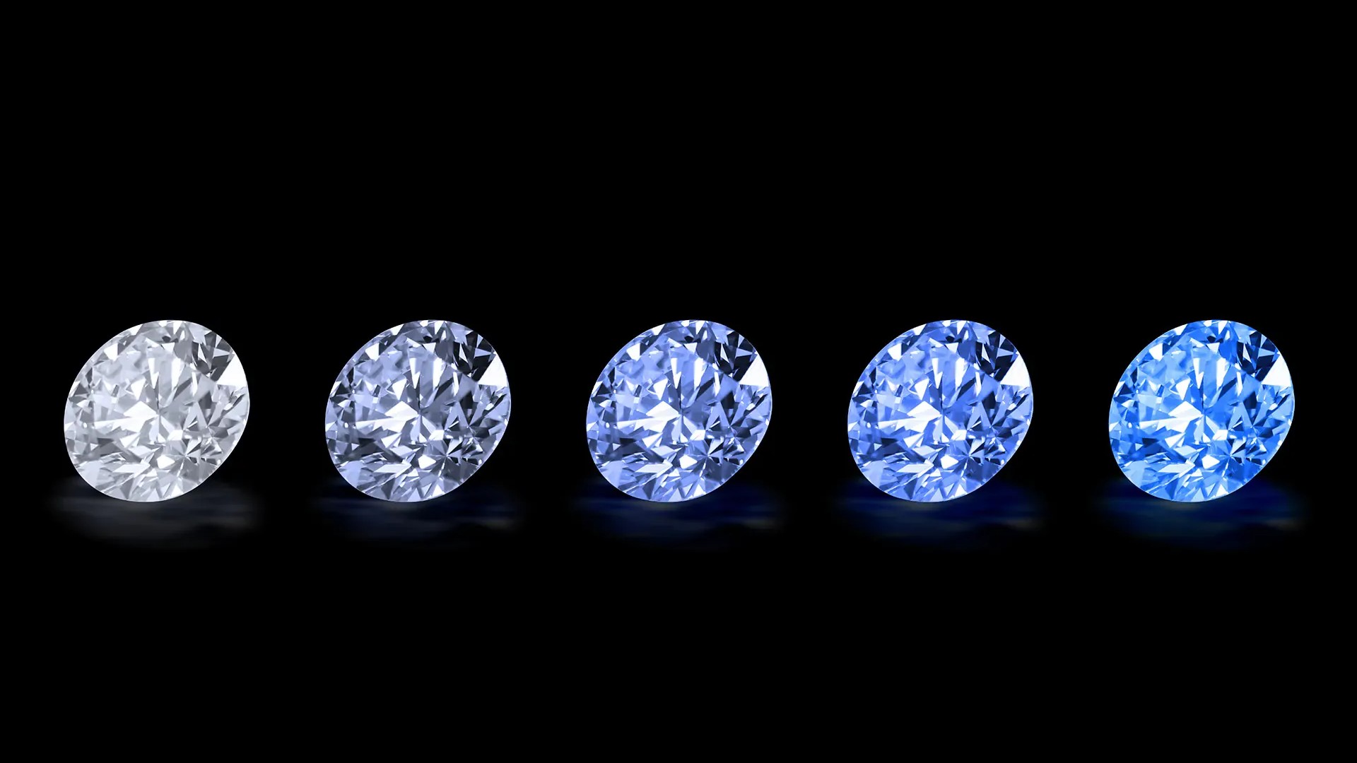ダイヤモンドの蛍光は、強さもですが色もさまざまです。濃いブルーや淡いブルー、イエロー、オレンジ、ピンク、グリーン、ブルーグリーンなど、表記もそれぞれ違います。その中でも現在もっとも多いのは、ブルーに蛍光するダイヤモンドです。色の違いは窒素分子の数や構造の差により生じます。