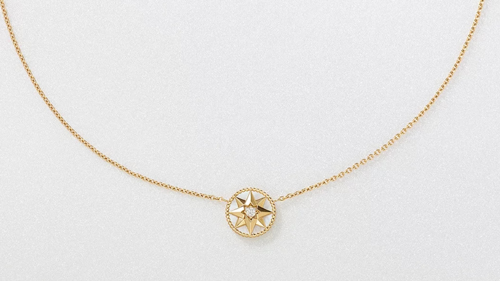 ローズ デ ヴァンは、ディオールのジュエリーラインの中でも特にアイコン的な存在です。羅針盤をモチーフとした丸いメダイヨンが特徴で、マザーオブパールや天然石が施されています。