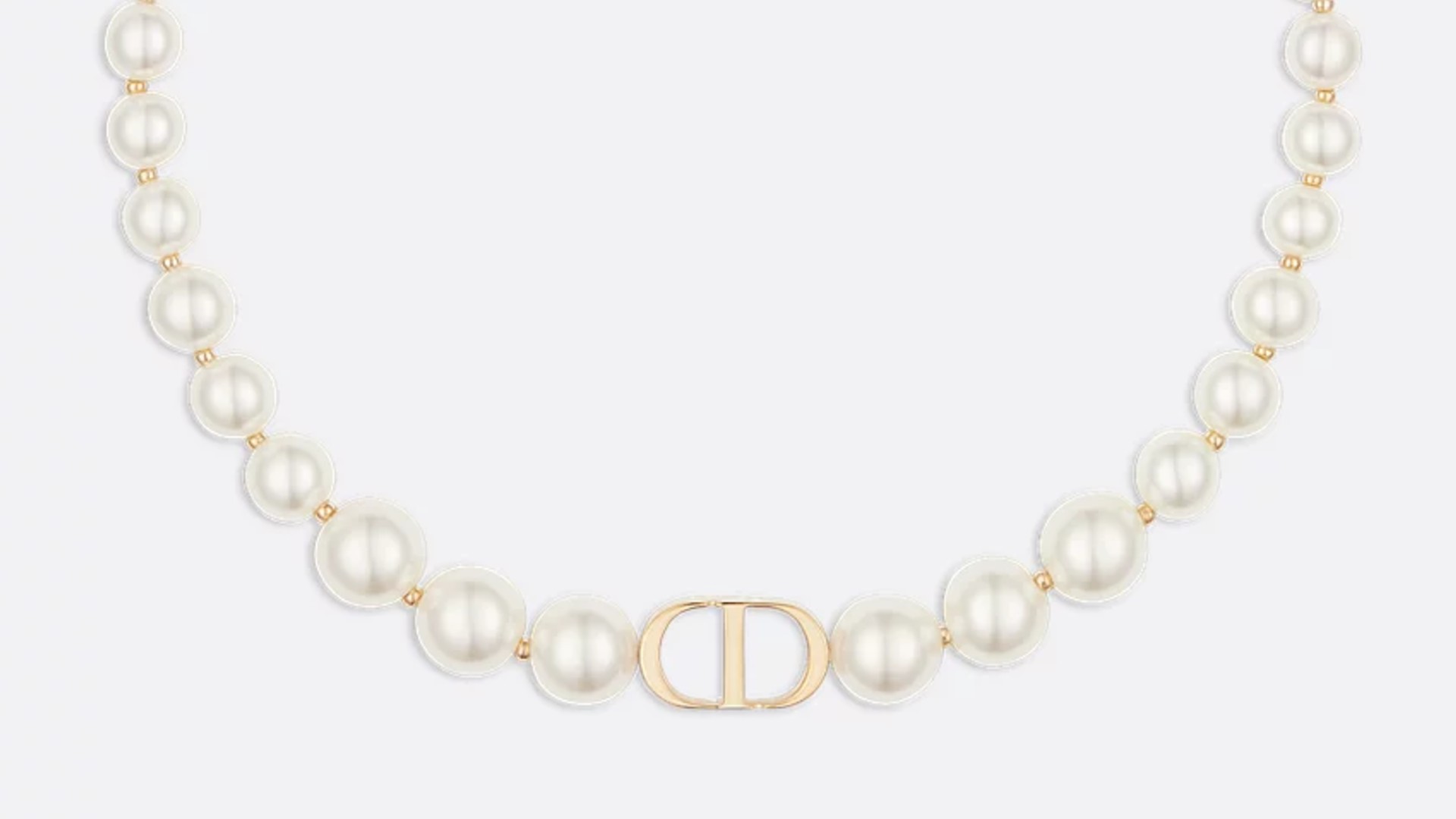 ディオールの本店所在地「30 モンテーニュ」を冠したこのチョーカーは、CDロゴやレジンパールを連ねたデザインが特徴で、J’ADIORよりもクラシカルでエレガントな雰囲気を纏います。パールの優雅さとメタルのモダンさが調和しており、パーティースタイルや、女性らしいブラウスに合わせることで、洗練された大人のスタイルが叶います。