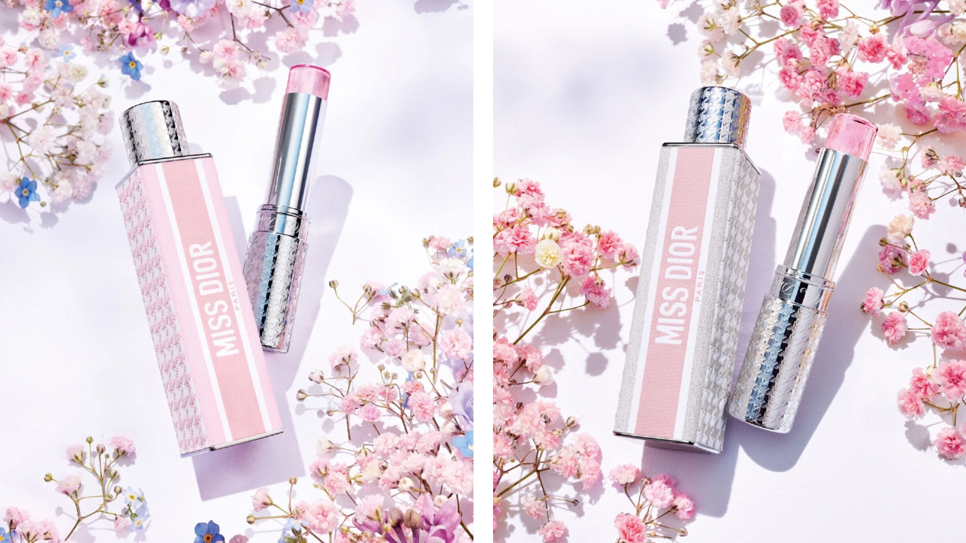香りは3種類あり、ディオールが大切にする花々にジューシーなフルーツを組み合わせた「グルマン(お菓子のような甘さ)」な仕上がりです。ダマスクローズにライチとバニラを合わせた「ロージー グロウ」、シロップ漬けのピーチがとろけるような「ピーチー グロウ」、そしてアイリスに甘酸っぱいラズベリーを添えた「パープル グロウ」がラインナップされています。