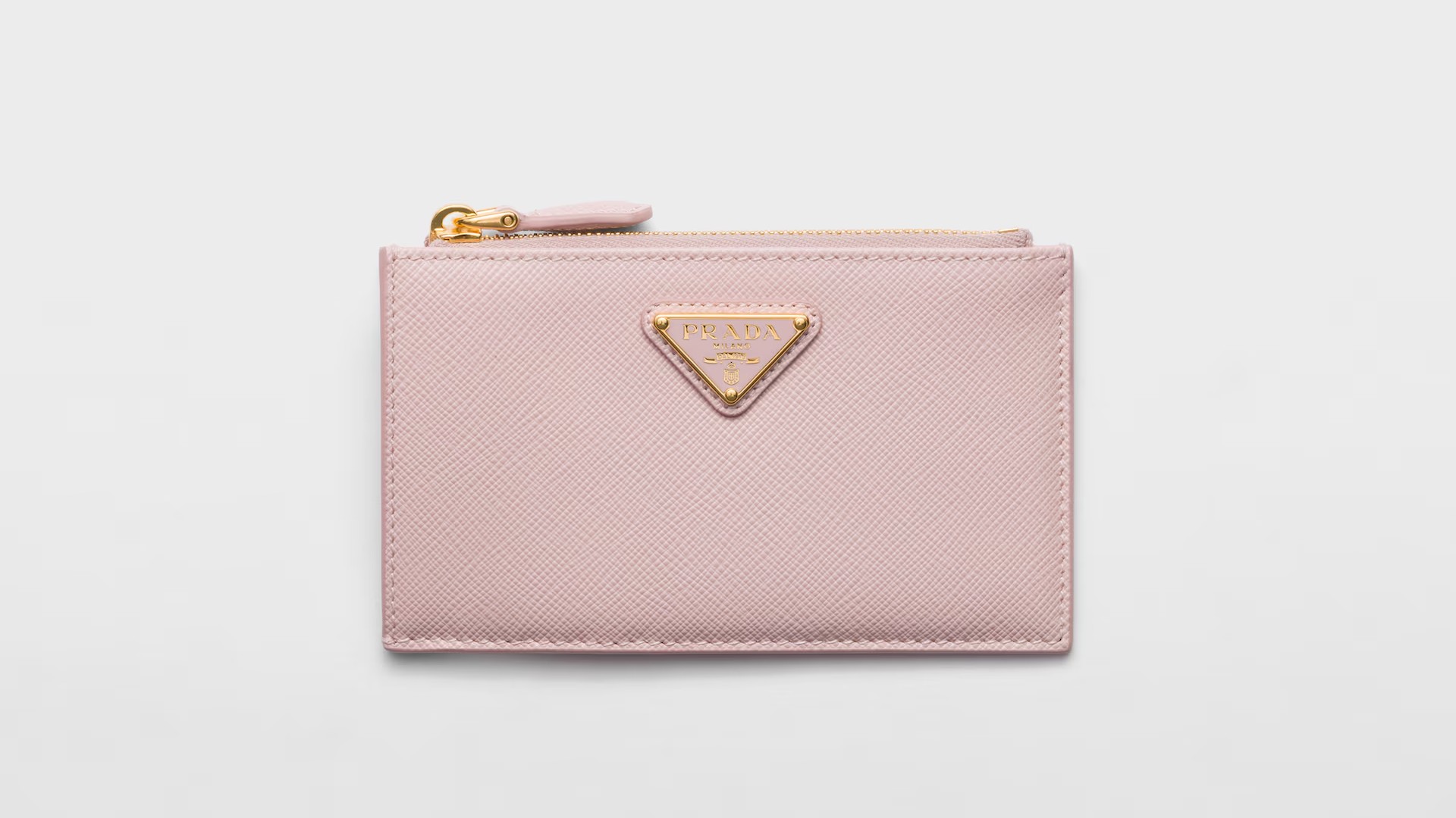 デザインは極めてシンプルで、フロントに配置された三角のロゴプレート「トライアングルロゴ」が、パステルカラーのレザーに映えます。硬質なレザーの手触りは頼もしく、ジッパーを開閉する際の金属音さえも心地よく響くでしょう。