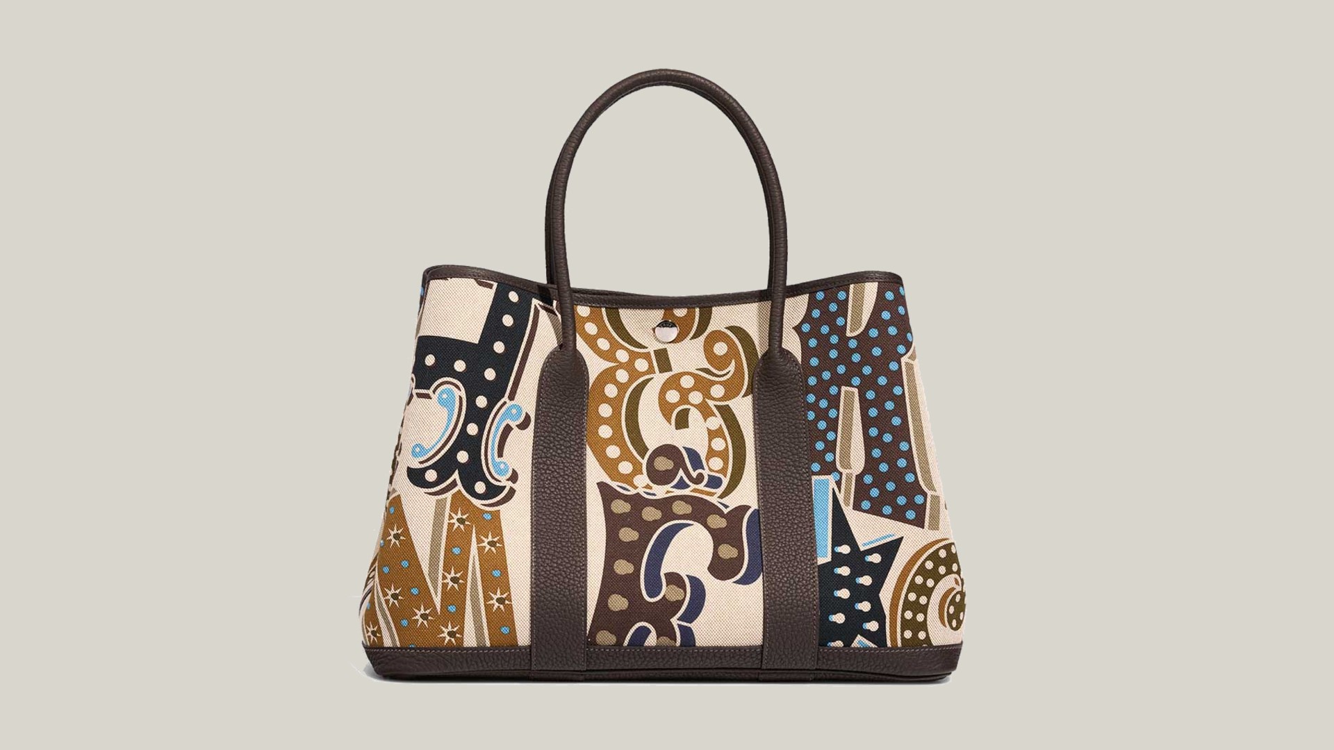 ガーデンパーティ36 エルメス・エレクトリックは、エルメスの公式ウェブサイトに掲載されているモデルです。大胆なアルファベットのカラーブロックがグラフィカルにデザインされています。エルメスの職人技と現代的なアートが融合した、遊び心のあるアイテムとして要注目です。