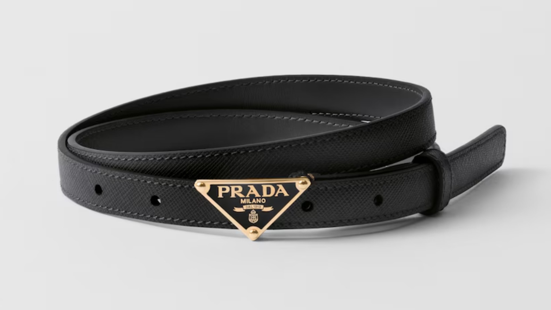 プラダのベルトは、過剰な装飾を削ぎ落とした「知的なミニマリズム」が最大の特徴です。ブランドの象徴であるトライアングルロゴは控えめながらも確かな存在感を放ち、都会的で洗練された印象をコーディネートにプラスしてくれます。