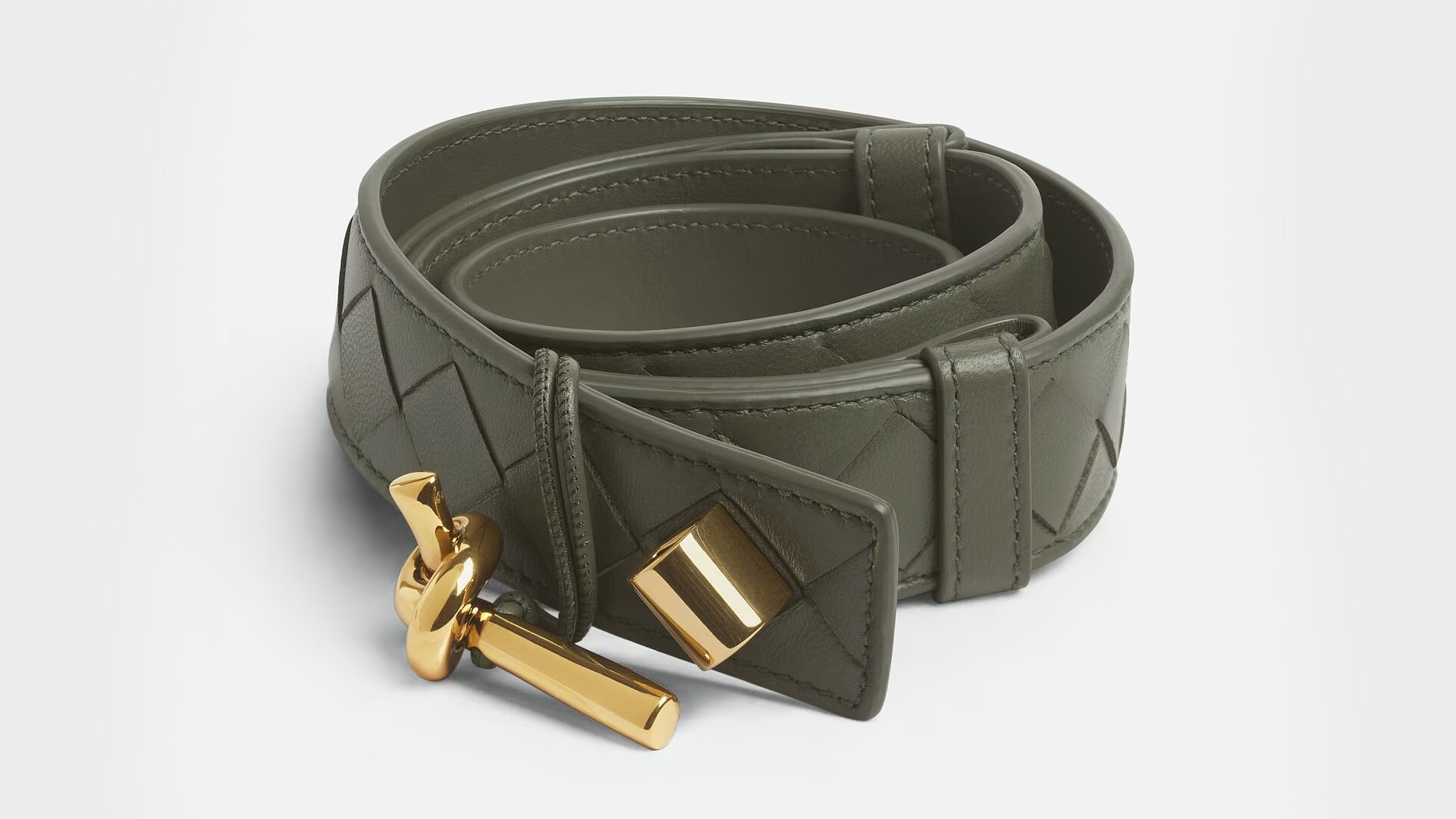 ボッテガ・ヴェネタのベルトは、ブランドロゴを一切出さない「クワイエット・ラグジュアリー(静かな贅沢)」の頂点に君臨しています。その象徴はロゴではなく、熟練した職人によるレザーの編み込み技法「イントレチャート」に由来しています。