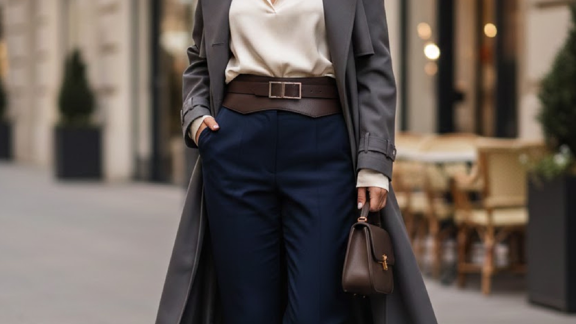 まず意識したいのは、「ハイウエストでの活用」です。最近のトレンドであるハイウエストのパンツやスカートにベルトを合わせ、ウエストラインを高い位置でマークすることで、スタイルアップと同時に現代的な垢抜けたシルエットが完成します。また、ジャケットやカーディガンの下からバックルをチラリと見せる「控えめな主張」を意識すると、大人の余裕を感じさせる知的な着こなしになるでしょう。
