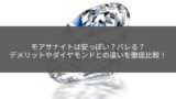 ダイヤモンドとほとんど同じともいえるモアッサナイトですがダイヤモンドよりも軽く、特殊な光の下では黄色や緑色などダイヤモンドとは異なる光り方をすることがあるので見分けることができるようです。