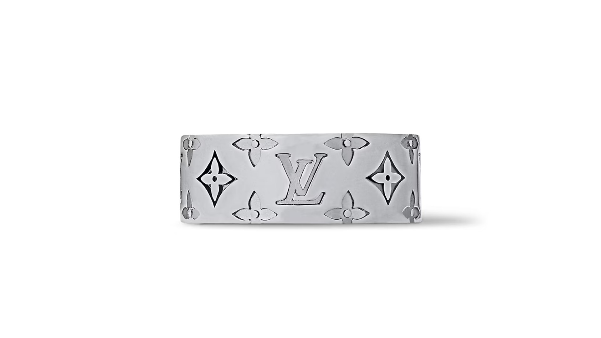 ルイヴィトンを象徴するモノグラム柄を取り入れたリングは、ブランドらしさをしっかり楽しめる定番モデルです。細かな彫刻に光沢感のあるシルバーカラーで仕上げを施されているため、力強いデザインでありながらクリーンな印象も与えます。