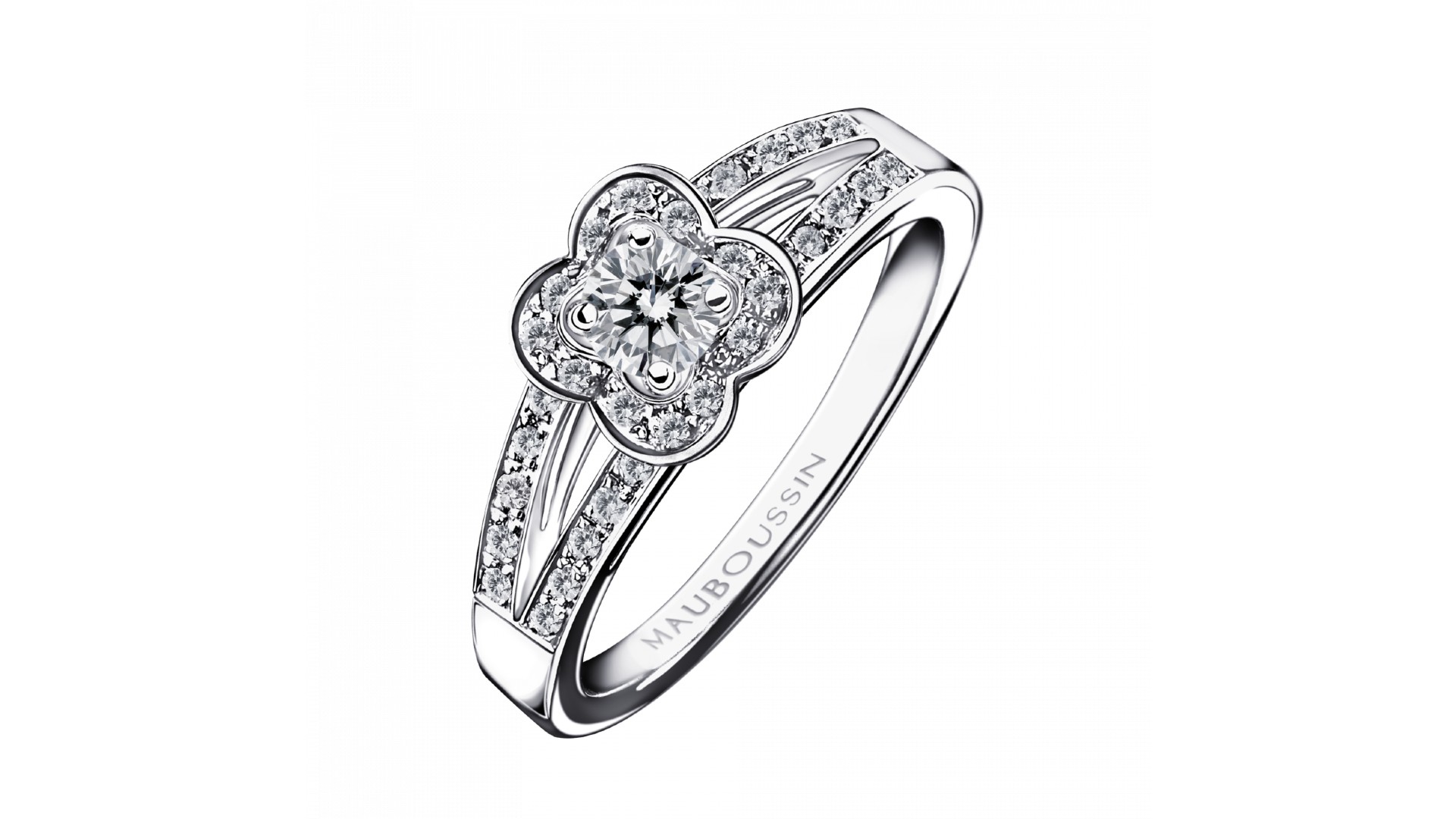 幸運のシンボルである四つ葉のクローバーをモチーフにした「チャンス・オブ・ラブ」は、モーブッサンを象徴するコレクションです。愛と幸福のチャンスをその指先から呼び込んでくれるような、希望に満ちた輝きを放ちます。