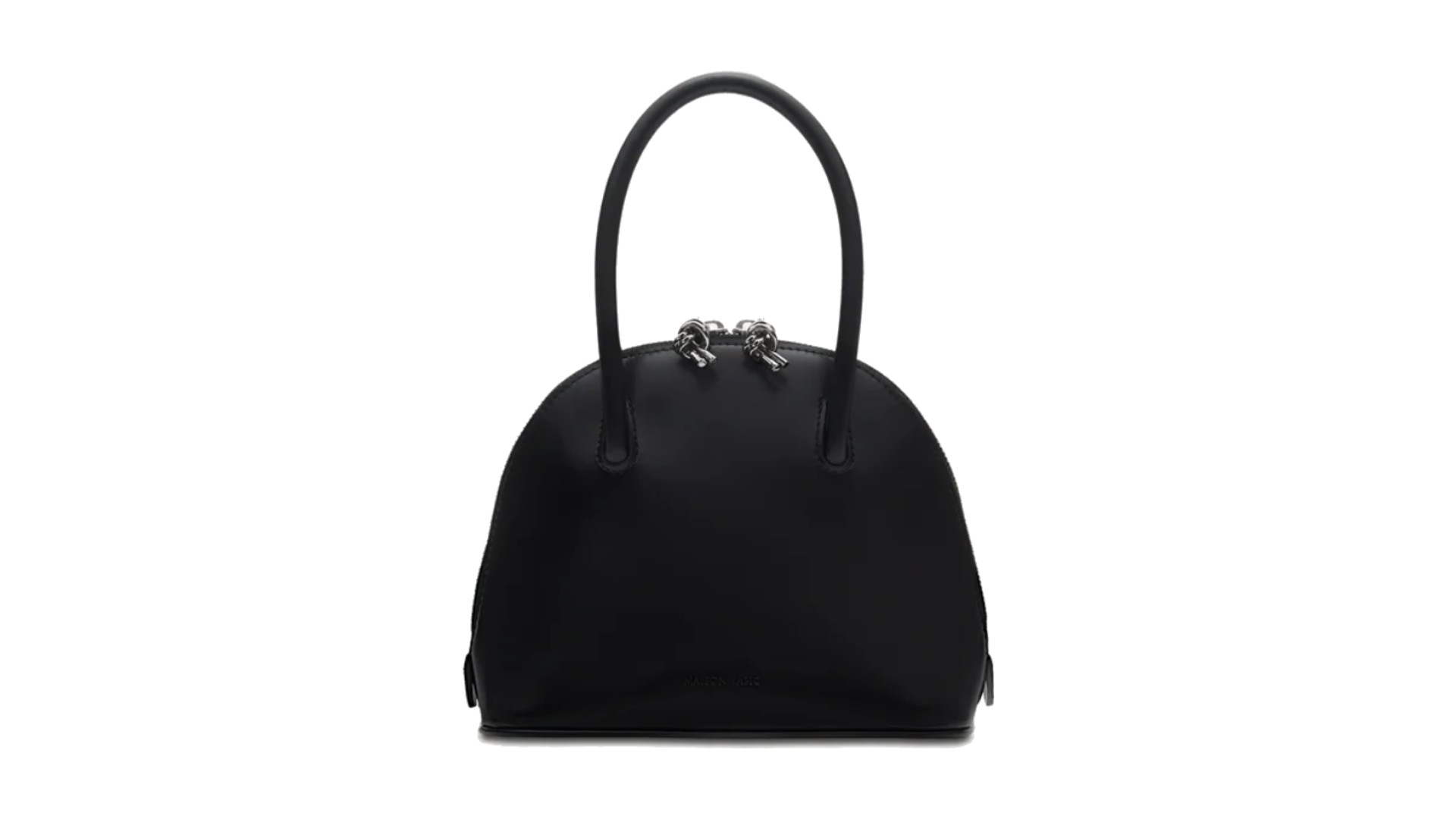 ARKシリーズの最小サイズのMINI MINIは、つややかな光沢が魅力のガラスレザーを使用しています。ぷっくりとした丸みのあるボディと、あえてシャープに細く仕上げたハンドルのコントラストが芸術的です。ダブルジッパーの引き手にはブランドアイコンであるノットが添えられています。