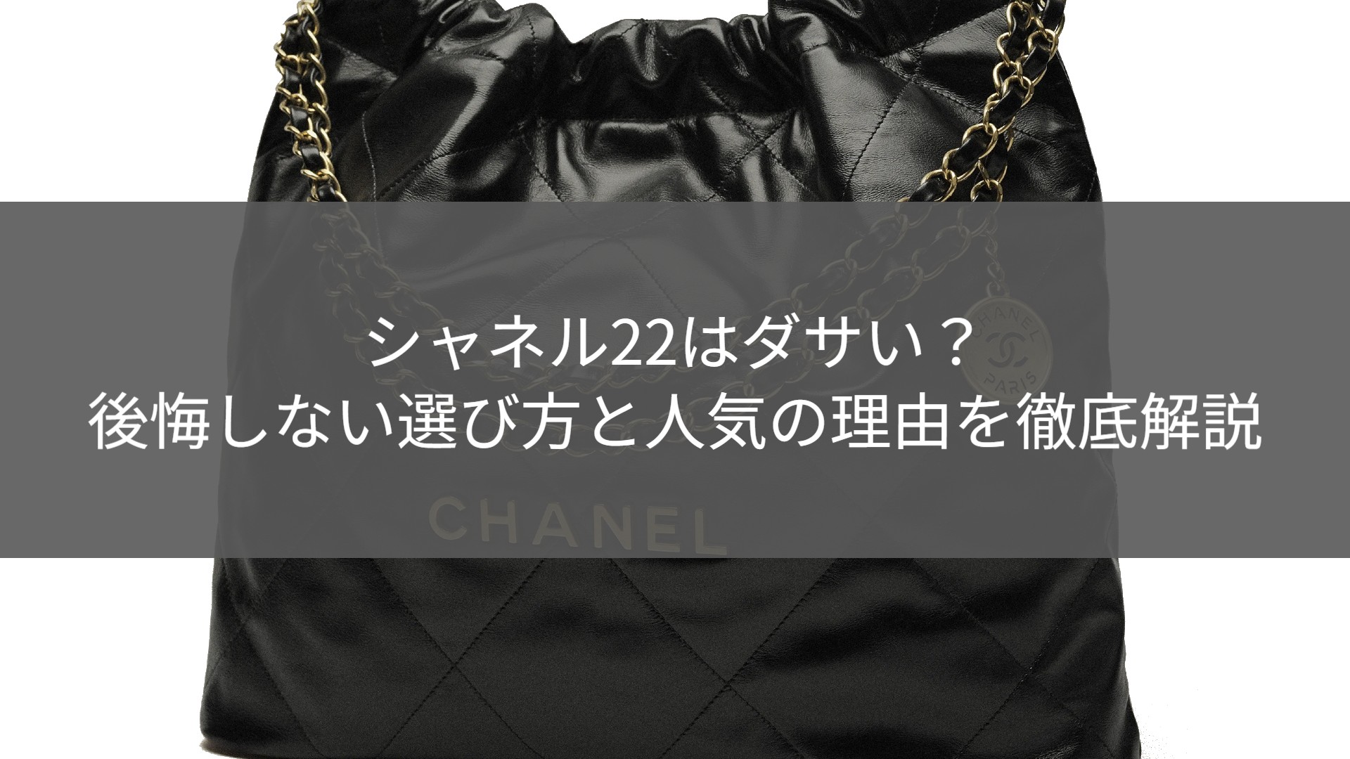 近年、SNS等で見かけることの多いシャネルの巾着型の人気バッグ「シャネル22」。モデルやインスタグラマーなどが愛用していることで話題を集めていますが、一部のネット上では「ダサい」といったネガティブなワードを見かけることがあります。 この記事では、なぜシャネル22が「ダサい」と言われるのかを理由を分析し、それでもなお世界中のファッショニスタから愛される本質的な魅力を徹底解説。さらに、サイズ別にリアルな収納力や使い勝手までご紹介していきますので、これから購入をお考えの方は是非、ご覧ください。 1.シャネル22が「ダサい」と言われる理由 2022年の春夏コレクションで登場して以来、ファッション界に衝撃を与えた「シャネル22」。ヴィルジニー・ヴィアールが生み出したこの新作バッグは、瞬く間にイットバッグの仲間入りを果たしました。 しかし、その革新的なデザインゆえに、一部からは厳しい評価の声が上がっているのも事実です。ここでは、シャネル22が「ダサい」と評価されてしまう具体的な理由について紹介したいと思います。 1-1.これまでのシャネルにないカジュアルなフォルム シャネル22が賛否を呼ぶ大きな理由は、デザイン構造にあります。シャネルのバッグといえば、アイコンであるマトラッセに代表されるように、かっちりとした構築的で上品なフォルムを思い浮かべる方が多いでしょう。対してシャネル22は、巾着袋のようにラフなシルエットが特徴です。しなやかなレザーによって生まれるくたっとしたフォルムは、これまでの重厚でかっちりとした印象とは大きく異なり、より軽やかな雰囲気を演出しています。 本来であればリラックス感として受け入れられるべき要素ですが、長年のファンからすれば「だらしなく見える」と感じてしまう場合があるのです。スーパーで使うエコバッグや、スポーツジムへ行く際の袋を連想させるという厳しい意見も聞かれます。 高級なカーフスキンを使用していながら、あえて形状を固定しないデザインは、これまでの「シャネル=端正な美」という方程式を崩すものでした。このギャップこそが、一部の人々に違和感を抱かせている根本的な原因ともいえるでしょう。 1-2.大胆なブランドロゴの主張 視覚的なインパクトの強さも、評価を分ける大きなポイントです。バッグのフロント部分には、メタルパーツで「CHANEL」という文字が大きくあしらわれています。 近年のファッショントレンドでは、控えめなロゴや、知る人ぞ知るデザインを示す「クワイエット・ラグジュアリー」が支持を集める傾向にあります。そのような潮流の中で、真正面からブランド名を主張するデザインは、時代に逆行しているように映ることがあります。 かつてのバブル期を彷彿とさせるような露骨なアピールは、「品がない」といったネガティブな印象を与えかねません。 1-3.一部のコーデではチープに見える可能性 スタイリングの難易度が高い点も、低評価につながる要因の一つです。シャネル22はリラックスした雰囲気を持つため、合わせる服装によっては、バッグだけが浮いてしまったり、逆に全体が安っぽく見えてしまったりするリスクがあります。 たとえば、スウェットやデニムといったカジュアルな日常着に無造作に合わせると、計算された「抜け感」ではなく、単なる「手抜き」に見えてしまう恐れがあるのです。 特に注意が必要なのは、バッグと服の素材感のミスマッチです。光沢のあるキルティングレザーは存在感が強く、安価な化学繊維の服と合わせると、バッグの高級感と服の質感の差が際立ち、ちぐはぐな印象を与えます。街中で見かけた際、全体のバランスが整っていないと、「高いバッグを持っているのに素敵に見えない」という残念な結果を招きかねません。 では、このような「ダサい」という意見がありつつも、なぜシャネル22は人気を集め続けているのでしょうか?ここからは、シャネル22が愛される理由を見ていきましょう。 2.シャネル22はダサくない!おしゃれな人に愛される理由 出典:CHANEL カジュアルすぎるとの声も聞かれますが、ファッション感度の高い層からは熱烈な支持を受けています。一見ラフに見えるフォルムには、メゾンの美学と現代的な軽やかさが絶妙なバランスで共存しているのです。 ここでは、シャネル22が愛される理由を紹介したいと思います。 2-1.伝統を再解釈したモダンなデザイン シャネル22が多くの人を惹きつけてやまない理由は、メゾンの歴史的なコードを守りながら、現代の空気感を巧みに取り入れたデザインにあります。まず目を奪われるのは、しなやかで光沢のあるキルティングレザーです。 指で触れると吸い付くような柔らかさを感じさせ、使い込むほどに味わい深くなる質感は、まさに極上の体験と言えるでしょう。 中央に大胆にあしらわれた「CHANEL」のロゴは、メタルパーツで表現され、遠目からでも確かな存在感を放ちます。単なるロゴの強調にとどまらず、自分ら