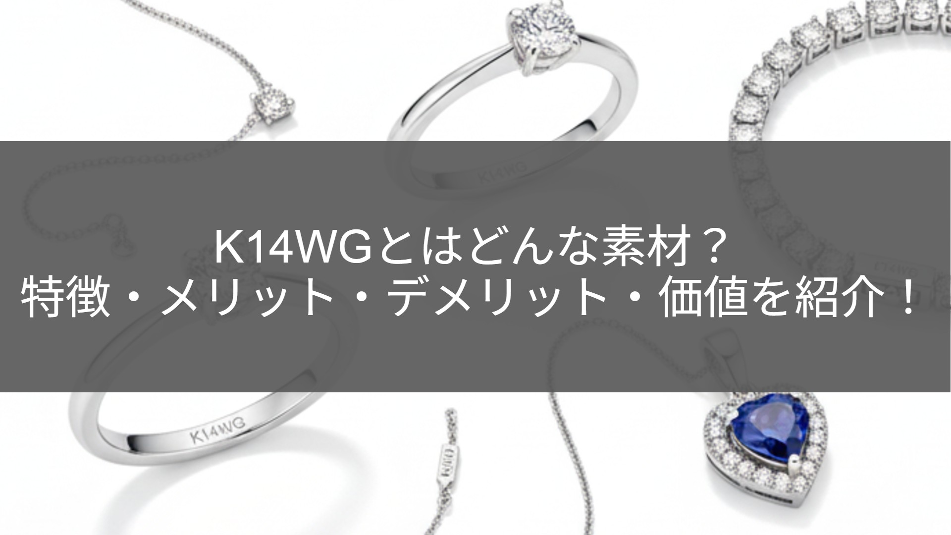 「K14WG」という表記や刻印を見かけたことはあるけれど、実際にどんな素材なのかいまいちピンとこない方も多いのではないでしょうか?ジュエリーショップやネット通販の商品説明でよく目にするものの、「Kって何?」「WG?」と疑問を持つ方も多いと思います。 実はK14WGとは、純金を約58.5%含む“14金ホワイトゴールド”のこと。プラチナのように白く輝きながらも丈夫で、普段使いからブライダルジュエリーまで幅広く使われている人気素材なんです。 ただし注意点もあり、変色や金属アレルギーのリスク、さらに18金と比べたときの資産価値の違いなどを覚えておきたい情報がいくつかあります。この記事では、K14WGの基本から特徴、メリット・デメリット、お手入れ方法や高く売るためのポイントまで徹底解説。K14WGについてスッキリ理解できると思いますので、ぜひ最後までご覧ください! 1.K14WG(14KWG)とは? 「K14WG」という表記を目にしたことがあっても、意味まで理解している人は意外と少ないのではないでしょうか?K14WGはジュエリーの素材を表す専門的な言葉ですが、知ってしまえばとてもシンプルです。 ここでは、まずK14WGの基本的な意味と、どんな金属が使われているのか、そして刻印の種類についてわかりやすく解説していきます。 1-1.K14WG=14金ホワイトゴールドの略 K14WGとは「14金ホワイトゴールド」を表す略称です。Kはカラット(純度)を意味し、14は24分率のうち14を示すため、純金の含有率は約58.5%となります。 金の純度は「24」を基準に考えられており、K24=純度100%の純金、K18=純度75%、K14=純度58.5%のように表されます。残りは銀やパラジウムなどの金属で構成されており、これを“割金”と呼びます。 純金だけでは柔らかすぎて日常使いには不向きですが、割金を加えることで硬さや耐久性が増し、ジュエリーに適した素材となるのです。K14WGはプラチナに似た白い輝きを持ちながら、価格は比較的抑えられており、幅広い層に選ばれているのが特徴です。 1-2.使用される金属 K14WGに使われる割金には主に銀(Ag)、パラジウム(Pd)、そして場合によってはニッケル(Ni)などがあります。銀やパラジウムは白い輝きを生み出す要素で、ホワイトゴールドならではの色合いを作り出しています。ニッケルは金属アレルギーの原因となる場合があるため、近年ではパラジウムを主体とした割金が選ばれることも増えてきました。こうした割金の配合によって色味や強度に差が生まれるため、同じK14WGでもメーカーやブランドによって色合いや印象が少し変わるのも面白い点です。 1-3.K14WGの刻印の種類 ジュエリーなどの多くは必ずといっていいほど刻印があり、素材の証明となります。K14WGの場合は「K14WG」とそのまま刻まれることが多いですが、「14KWG」「14K WG」「585」といった表記もあります。「585」は純金含有率58.5%を意味する国際的な刻印で、海外ブランドではこちらを目にすることもあります。 こうした刻印はジュエリーを見分けるうえでの目安になるので、商品を選ぶ際にはぜひチェックしてみましょう。 K14WGの意味や刻印の種類が分かったところで、気になるのは「実際にどんな特徴があるのか」という点ですよね。次の章では、K14WGが持つ輝きや耐久性、そして資産価値について詳しく見ていきましょう。 2.K14WGの特徴 K14WGは、単に“14金ホワイトゴールド”という名前だけでなく、実際の使いやすさや見た目にも魅力が詰まっています。ここでは、「輝き」「耐久性」「資産価値」の3つの観点から、その特徴を紹介します。 2-1.プラチナのような白金の輝き K14WGの最大の特徴は、プラチナを思わせるような白く上品な輝きです。銀やパラジウムなどの割金によって、純金の黄色味が抑えられ、清潔感のある白色が生まれます。このため結婚指輪や婚約指輪など、フォーマルなシーンにもぴったり。さらに表面にロジウムメッキが施されることも多く、より明るく美しい輝きを放ちます。ゴールドの華やかさとプラチナの落ち着きを両立した色合いは、多くの人に選ばれる理由のひとつです。 2-2.耐久性が高い 純金は柔らかく傷がつきやすい素材ですが、K14WGは割金の割合が多いため硬さと耐久性に優れています。そのため日常的に身につけるジュエリーに適しており、指輪やネックレスなどの普段使いにも安心です。特に細かい装飾が施されたデザインでも変形しにくい点は大きな魅力です。毎日の生活の中で長く愛用できるのは、K14WGならではの強みといえるでしょう。 2-3.資産価値が高い K14WGは純度58.5%の金を含んでいるため、一定の資産価値を持っています。18金やプラチナに比べるとやや下がりますが、それでも純金の含有量がしっかりあるため、アクセサリーとして楽しむだけでなく、将来的に売却する際にも価値が認められる素材です。「デザイン性と資産性のバランスが取れている」といえるのがK14WGの特徴で、ジュエリーとしての実用性と金としての価値の両方を求める方に選ばれています。 美しい輝きや耐久性