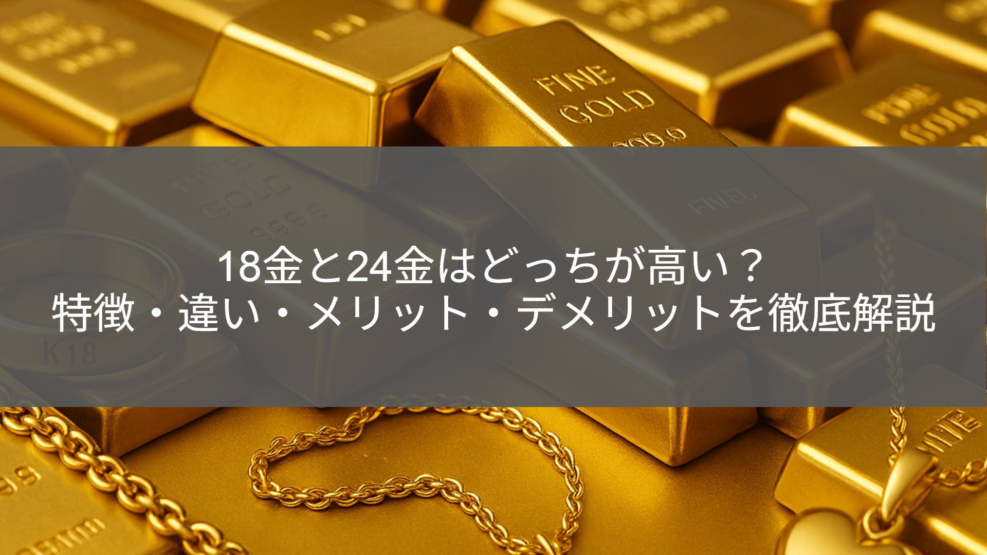 18金と24金、同じゴールドでも「どっちが高いの?」と気になる人は多いはずです。純度や色味、価格、さらには使いやすさまで、意外と知られていない違いがあります。 本記事では18金と24金の特徴を比較しながら、それぞれの魅力や注意点をわかりやすく解説します。購入を検討している方はもちろん、将来的に売却を考えている方にも役立つ情報をまとめました。ぜひ最後までご覧ください! 1.「18金」と「24金」どっちが高い? 金製品を選ぶときに、多くの人が気になるポイントのひとつが「18金と24金ではどっちが高いのか」という違いです。純度や価格、そしてジュエリーとしての使いやすさを比べると、それぞれに優れている部分があります。ここでは、価値と実用性という2つの視点から見ていきましょう。 1-1.24金は価値が高い 24金は純度99.9%以上の純金で、金としての評価が最も高い素材です。18金が金75%に他の金属を混ぜているのに対して、24金はほぼ純粋な金だけで構成されています。そのため、同じ重さで比べれば必ず24金の方が価値は高く、買取相場も常に上回ります。 実際の市場でも、金の国際相場が動けば24金の価格は直結して変動します。たとえば金相場が上昇すれば、24金の指輪や純金バーはそのまま資産として価値が増すわけです。投資目的で純金インゴットや純金ジュエリーを購入する人が多いのは、この資産性の高さに理由があります。つまり、金そのものの「価値」を求めるなら24金が最も高いといえるのです。 1-2.18金は実用性が高い 日常的にジュエリーとして身につけるなら18金の方が優れています。純金は柔らかく変形しやすいため、指輪やブレスレットにすると日常の衝撃や圧力で曲がったり傷ついたりしやすいのです。これに対して18金は、金75%に銀や銅、パラジウムなどの金属を混ぜることで強度が増しています。そのためリングやチェーン、時計のケースなど、普段使いするアイテムに多く採用されています。 また、18金は色味のバリエーションが豊富なのも特徴です。黄色味の強いイエローゴールドだけでなく、ピンクゴールドやホワイトゴールドなど、他の金属との配合によって多彩な表情を楽しめます。これによりデザイン性が高まり、ファッションジュエリーとして幅広い層に支持されているのです。価格では24金に劣るものの、実際に身につけるジュエリーとしての実用性の高さは18金に軍配が上がります。 この章でご紹介したように、24金は金そのものの価値が高く、18金はジュエリーとしての実用性に優れています。ただし両者の違いはこれだけではありません。純度や色味、耐久性、さらには流通量や加工のしやすさまで、多くの点で差があります。次の章では、18金と24金の違いを10項目に分けて詳しく見ていきましょう。 2.【徹底比較】18金と24金の10個の違い 18金と24金は、どちらもゴールドとして人気がありますが、実は細かい部分にさまざまな違いがあります。それぞれの特徴を理解しておくことで、自分に合った金製品を選びやすくなります。 ここでは18金と24金の違いを10項目に分けて詳しく解説していきます。 2-1.純度の違い 18金は金の含有率が75%で、残りの25%には銀や銅、パラジウムなどが配合されています。ジュエリーの刻印では「K18」と表記され、国内外で幅広く流通している素材です。対して24金は純度99.9%以上の純金で、「K24」や「純金」と刻印されます。数字だけを見ても、どれだけ含有率に差があるかがわかりますよね。純度が高いほど金としての価値が評価されやすく、資産や投資目的で選ばれるのが24金。対して18金は、純度と他金属のバランスを取った実用的な素材として親しまれています。 関連記事はコチラ https://estime.co.jp/column/kind-of-gold/ 2-2.色味の違い 18金と24金では、見た目の色合いに明確な差があります。24金は純度が高いため、濃厚で深みのある黄金色を放つのが特徴です。対して18金は、残りの25%に混ぜられる金属によって色味が変化します。シルバーを多く含めば淡いトーンになり、銅を多く含めばピンクがかった色合いになります。さらにパラジウムを加えるとホワイトゴールドのように白っぽい輝きが生まれます。 このように18金は色のバリエーションが豊富で、ファッションや好みに合わせやすいのが魅力です。つまり、24金は「純金の象徴」として一目でわかる濃い黄金色、18金は「多彩なカラー」を楽しめる実用的な素材という違いがあります。 2-3.比重の違い 18金と24金は、同じ大きさでも手に取ったときの重さが違います。これは比重に差があるためです。※比重とは...同じ体積でどれだけ重いかを示す性質のこと。純度が高いほど比重が大きくなり、重みを強く感じます。 24金は純度が99.9%以上あるため密度が高く、指輪やブレスレットにするとずっしりとした重量感があります。これが純金ならではの存在感です。18金は他の金属が25%混ざる分だけ比重が下がり、24金より軽く仕上がります。そのため長時間身につけても疲れ