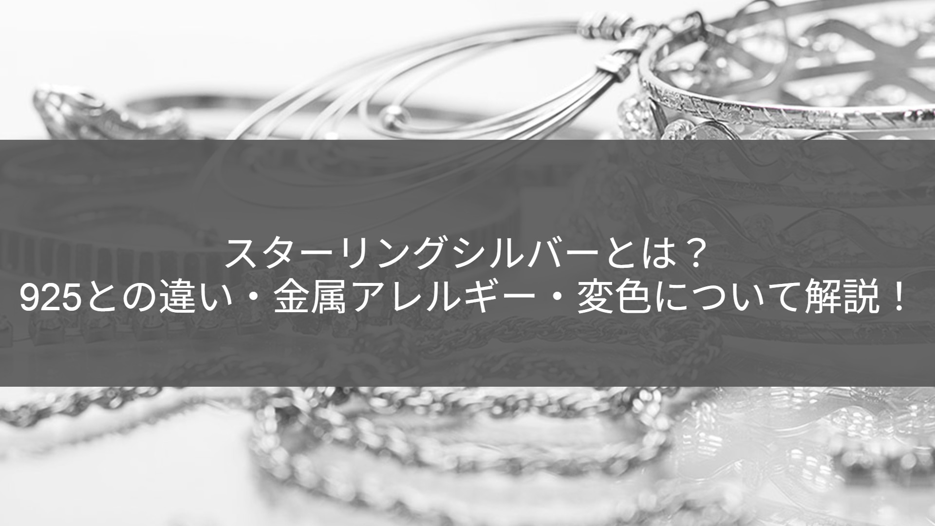 アクセサリーの素材としてよく目にする「スターリングシルバー」。上品な輝きとほどよい重みがあり、長く愛用できる素材として人気を集めています。ただ、名前は知っていても「シルバー925と何が違うの?」と思う人も多いはずです。 スターリングシルバーは、見た目の美しさだけでなく、使い心地や耐久性にも優れた魅力を持つ素材。この記事では、その特徴やメリット・デメリット、そしてお手入れ方法まで、わかりやすく紹介していきます。 1.スターリングシルバーとは? スターリングシルバーとは、銀を92.5%、残りの7.5%に銅のみを混ぜ合わせた銀合金のことを指します。シルバー925と同じ純度を持ちながら、割金(わりがね)に銅以外の金属を使用していないものだけが「スターリングシルバー」と呼ばれます。 日本ジュエリー協会でもこの定義が採用されており、時効硬化と呼ばれる特性により、使い続けることで徐々に強度が増していく点が特徴です。英語の“sterling”には「純粋な」「真正の」という意味があり、その名の通り、混じりけのない品質を表しています。美しい光沢と高い耐久性を兼ね備えているため、ティファニーなどのハイブランドでも広く採用されています。スターリングシルバーは、見た目の美しさだけでなく、素材そのものに信頼性と長く愛用できる魅力があるのです。 2.シルバー925とは? シルバー925とは、銀の純度が92.5%で作られた銀合金のことを指します。銀の純度は1000分率で表され、純銀を「シルバー1000」としたとき、925はそのうち92.5%が銀で構成されているという意味になります。残りの7.5%の割金(わりがね)には、主に銅が使用されますが、製品によってはニッケルや亜鉛、アルミニウムなどが加えられることもあります。これらの金属を混ぜることで、純銀よりも硬く、傷つきにくい特性を持たせることができます。 スターリングシルバーと同様に92.5%の銀を含みながらも、割金の種類によって性質や色味にわずかな違いが生まれるのがシルバー925の特徴です。 3.スターリングシルバーとシルバー925の3つの違い スターリングシルバーとシルバー925はどちらも銀を92.5%含む合金ですが、細かく見ると素材の組成や性質に違いがあります。特に「割金(わりがね)」「時効硬化」「刻印表記」の3つは見逃せないポイント。それぞれを理解しておくことで、アクセサリーを選ぶ際の目安にもなります。 3-1.割金の違い 最も大きな違いは、混ぜられている金属の種類です。 スターリングシルバーは、銀92.5%に対して残りの7.5%がすべて銅で構成されています。一方のシルバー925は、銅以外にもニッケルや亜鉛、アルミニウムなどが割金として使用される場合があります。銅のみを使うスターリングシルバーは、より純度が高く柔らかな色味が特徴。対してシルバー925は、割金の種類によって色合いや硬さがわずかに異なります。 3-2.時効硬化の違い スターリングシルバーは「時効硬化」と呼ばれる性質を持ち、使い続けることで徐々に硬度が増していく特徴があります。これは銀と銅の分子が時間の経過とともに安定した結晶構造を作るためで、強度が上がり、変形しにくくなる効果があります。シルバー925にも似た特性はありますが、割金に他の金属が含まれることでこの性質が弱まる場合があります。そのため、スターリングシルバーの方が経年による耐久性に優れているといわれています。 3-3.刻印や表記の違い 刻印や表記にも僅かに違いがあります。スターリングシルバーには「STERLING」や「925」と刻まれていることが多く、これは銀の含有率が92.5%以上であることを示す印です。一方、日本では「SV925」や「SILVER925」と表記されるケースもあります。しかし、これらはすべて銀の純度を表す刻印であり、刻印だけで割金の種類まで判断することはできません。購入時は刻印とともに、販売元が提示する素材表示を確認するのがおすすめです。 4.スターリングシルバーのメリット スターリングシルバーが多くのジュエリーブランドで選ばれているのは、素材そのものに優れた特性があるからです。見た目の美しさだけでなく、扱いやすさやコスト面でもバランスがよく、普段使いのアクセサリーにぴったりの素材といえます。ここでは、スターリングシルバーが持つ3つの主なメリットを紹介します。 4-1.錆びることがない スターリングシルバーは金属の中でも錆びにくい素材です。鉄のように酸化してボロボロになることはなく、空気中の硫黄成分によって黒ずむ「変色」はあっても、それは表面反応にすぎません。磨くことで元の輝きを取り戻せるため、長年使用しても美しさを保てます。水や汗に触れてもすぐに錆びることはなく、日常的に安心して使える点も大きな魅力です。 4-2.硬度が高くアクセサリーに最適 銀そのものは柔らかい金属ですが、スターリングシルバーは銅を加えることで適度な硬さを持たせています。そのため変形しにくく、リングやネックレスなどの細かなデザインにも