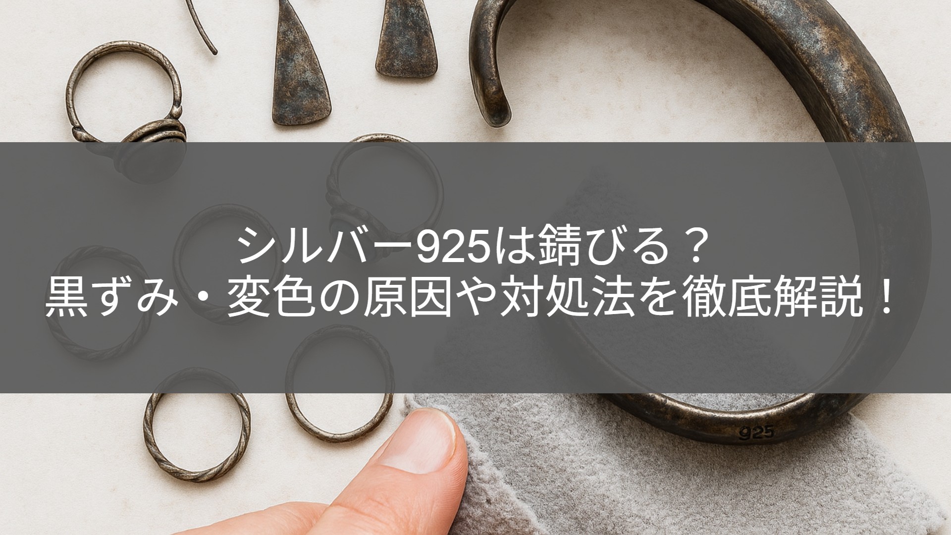 お気に入りのシルバーアクセサリーをふと見ると、なんだか色がくすんで見える。もしかして錆びた…?そんな経験、ありませんか?長く使っているとどうしても変化が出てくるのが、シルバー925という素材の特徴。 でも、それは本当に“錆び”なのでしょうか。この記事では、シルバー925の見た目が変わる理由や、輝きを守るためのケア方法について詳しく紹介します。 1.【はじめに】シルバー925とは? シルバー925とは、銀の含有率が92.5%の銀合金を指します。残りの7.5%には「割金(わりがね)」と呼ばれる他の金属が加えられており、主に銅が使われますが、製品によってはニッケルや亜鉛、アルミニウムなどが含まれる場合もあります。 純銀(シルバー1000)は柔らかく、アクセサリーなどの加工には不向きなため、他の金属を混ぜることで強度や耐久性を高めたのがシルバー925です。この配合によって、輝きの美しさと扱いやすさを両立できるのが特徴です。ブランドジュエリーやハンドメイドアクセサリーなど幅広いアイテムに使われており、日常使いしやすい素材として世界中で親しまれています。 また、シルバー925は割金の種類によっては「スターリングシルバー」とも呼ばれ、国際的にも品質の基準として認められています。見た目は上品で華やかですが、金やプラチナよりも手頃な価格で楽しめる点も人気の理由です。高級感と実用性を兼ね備えた素材、それがシルバー925です。 2.シルバー925は錆びる? 「シルバー925は錆びるの?」という疑問を持つ方は少なくありません。アクセサリーやジュエリーとして人気のある素材ですが、時間の経過とともに黒ずんだりくすんだりすることがあります。その見た目の変化から“錆びた”と感じる人も多いでしょう。けれども、シルバー925は鉄のように腐食することはなく、実際には非常に錆びにくい金属です。ここでは、シルバー925が錆びると言われる理由と、その誤解の正体を解説します。 2-1.錆びることはほとんどない 結論から話すとシルバー925が錆びることはほぼありません。シルバー925は、金属の中でも非常に錆びにくい素材です。 錆びとは「酸化」によって金属が腐食する現象のことを指しますが、銀はイオン化傾向が小さく、金やプラチナに次いで酸化しにくい金属です。そのため、鉄のように赤錆が出てボロボロになることはまずありません。 高温下で酸化することはありますが、日常生活の範囲では問題ないレベルです。何百年も前の銀製品が今も美しい状態で残っているのは、その証拠といえます。つまり、シルバー925が黒ずむのは“錆び”ではなく、別の反応が起きているからなのです。 2-2.錆びたように見えるのは酸化による黒ずみや変色 シルバー925は、表面が黒っぽくなったり、黄みを帯びて見えることがありますが、それは錆びではありません。金属そのものが劣化しているわけではなく、時間の経過や環境、酸化によって表面の色味が変化しているだけです。見た目は錆びたように感じられても、銀本来の輝きはその下にしっかりと残っています。こうした色の変化は、シルバー925という素材にとってごく自然な現象です。では、なぜこのような変化が起こるのでしょうか。次の章で、その原因を詳しく見ていきましょう。 3.【錆びじゃない!】シルバー925の黒ずみや変色の原因 シルバー925は錆びない金属ですが、時間の経過とともに黒ずみや変色が見られることがあります。これは、素材の性質による自然な化学反応であり、使用環境や保管状態によって起こり方が異なります。ここでは、黒ずみや変色の主な3つの原因を順に見ていきましょう。 3-1.空気中の硫黄による「硫化反応」 シルバー925が黒ずむ最も代表的な原因が、空気中の硫黄成分との化学反応です。銀は酸化には強いものの、硫黄と結びつきやすい性質を持っています。そのため、わずかに含まれる硫黄化合物と反応し、「硫化銀」と呼ばれる黒い膜を表面に形成します。 これがシルバー特有の黒ずみの正体です。硫化反応は特に、温泉地や排気ガスが多い地域など、硫黄分を含む環境で起こりやすくなります。これは銀の自然な反応であり、素材が傷んでいるわけではありません。後のケアで元の輝きを取り戻すことができます。 3-2.汗や皮脂・化粧品などによる化学反応 肌に直接触れるアクセサリーの場合、汗や皮脂、ハンドクリームや化粧品などの成分も変色の原因になります。これらに含まれる塩分や油分、硫黄化合物が銀の表面に反応し、色のくすみや黒ずみを引き起こすことがあります。特に夏場や運動中など、汗をかきやすい時期は注意が必要です。肌に長時間触れたまま放置すると、変色が進みやすくなります。使用後に軽くクロスで拭くだけでも、こうした化学反応を抑えることができます。 3-3.水分・湿気・保管環境による影響 水分や湿気も、シルバー925の色変化に大きく関係しています。湿気の多い場所では空気中の成分と反応しやすくなり、黒ずみが発生しやすくな