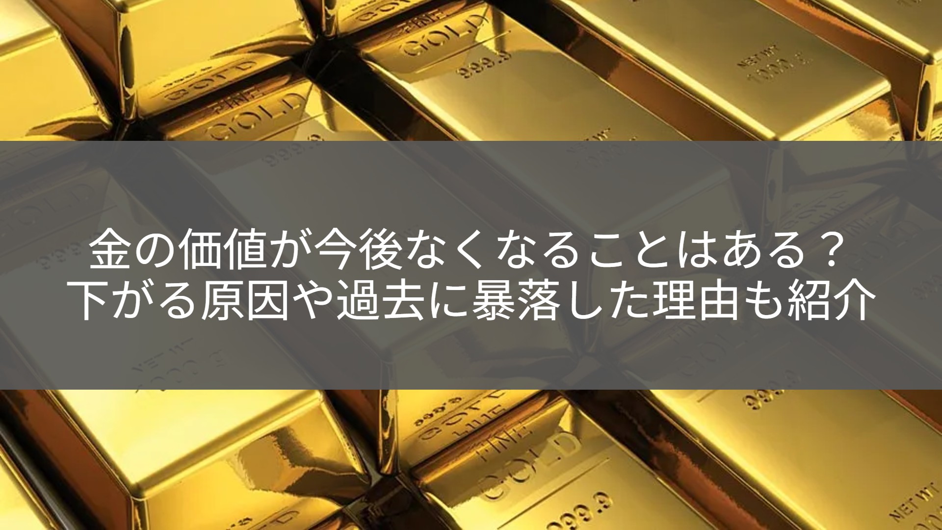 ここ数年、インフレや円安、株式市場の不安定さを背景に「金(ゴールド)」の人気が再び高まっています。資産の一部として金を保有する人も増えていますが、一方で「金の価値がなくなることは今後あるの?」と不安に感じる人も少なくありません。 確かに相場は日々変動しており、過去には暴落を経験した時期も何度かあります。しかし、長い歴史の中で金は常に“価値のある資産”として世界中で取引され続けてきました。 では、なぜ金は他の資産と違い、価値を失わないとされているのでしょうか。本記事では、金の価値が高い理由や下落の要因、過去の暴落事例、今後10年の見通しまでをわかりやすく解説します。是非最後までご覧ください。 1.金の価値がなくなることはある? 金は長い歴史の中で、世界中の人々に「価値を保存する資産」として扱われてきました。しかし、現代のようにデジタル通貨や株式など多様な投資先がある時代に、「金の価値がなくなる可能性はないのか?」と疑問に思う人もいるでしょう。 結論から言えば、金の価値が完全にゼロになる可能性はほとんどないです。なぜなら、金は国家や企業の信用に依存せず、世界中どこでも通用する“実物資産”だからです。紙幣のようにインフレで価値が下がることもなく、需要は宝飾品・投資・産業用と幅広い分野に存在します。 ただし、金の価格は為替や金利、世界経済の動向によって日々変動するため、「短期的な上下」は避けられません。つまり、金は永遠に安定しているわけではなく、“長期的に価値を保ち続ける資産”として考えるのが正しい見方です。 では、なぜ金はこれほどまでに価値を失わず、時代を超えて選ばれ続けているのでしょうか。次章では、その根本的な理由を4つの視点から解説します。 2.【なぜ高い?】金の価値がなくならない理由 金が何千年にもわたり“価値ある資産”として扱われてきたのは、単なる偶然ではありません。世界の経済がどれほど変化しても、金が信頼を失わないのは、ほかの資産にはない「物理的・社会的な特性」を備えているからです。ここでは、金の価値を支える4つの根本的な理由を紹介します。 2-1.限られた資源による高い「希少性」 金は地球上に存在する量が非常に少なく、採掘できる場所も限られています。新たに供給される金の量は年間でごくわずかであり、採掘コストの高さも価格を押し上げる要因です。 需要に対して供給が追いつかない構造的な「希少性」が、長期的に金の価値を支えています。つまり、どれほど技術が進歩しても“簡単に増やせない資源”であることが、金の最大の強みです。 2-2.世界中で通用する「共通価値」 金は、国や通貨の枠を超えて取引できる“世界共通の資産”です。どの国の経済が不安定になっても、金の価値は他国でもほぼ同じ基準で評価されます。通貨が暴落したり、金融システムが混乱したりしても、金は交換手段や価値保存の手段として機能します。この“国境を越えた信頼性”こそが、金が長期的に資産として選ばれ続ける理由のひとつです。 2-3.劣化しにくい「普遍性」と「不変性」 金は空気や水に触れても錆びず、酸やアルカリにも強いという特性を持っています。そのため、何十年・何百年経っても輝きを失わず、資産としての形を保ち続けます。さらに、熱しても性質が変わらないため、再利用が容易でリサイクル性にも優れています。こうした“劣化しない素材”であることが、金を長期的に価値を保つ資産として支えています。 2-4.不況時にも需要が高まる「安定性」 世界経済が不安定なとき、人々は「安全資産」である金を求めます。株式や不動産などが値下がりしても、金はその影響を受けにくく、むしろ価格が上昇するケースもあります。戦争・インフレ・金融危機といった“有事”に強いのは、金が実物資産であり、信用リスクを伴わないからです。そのため、金は不況のたびに注目され、信頼を再確認される存在となっています。 金がどの時代でも価値を保ち続けてきたのは、こうした物理的な強さと経済的信頼性が両立しているからです。次章では、そんな金でも一時的に価値が下がることがある“下落の要因”について詳しく見ていきます。 3.金の価値が下がる3つの要因 金は“長期的な安全資産”といわれますが、短期的には大きく値を下げることもあります。とくに金融政策や為替動向、投資マネーの流れといったマクロ経済の変化は、金の価格に直接影響を与える重要な要素です。こうした要因を正しく理解しておくことで、短期的な下落に惑わされず、賢く金と向き合う判断軸を持つことができます。 3-1.金利の上昇 金の価格と金利には密接な関係があります。金は利息や配当を生まないため、金利が上昇すると“金を保有する機会コスト”が高くなるのです。たとえば米国のFRBが利上げを行うと、ドル建ての債券や預金の利回りが上がり、投資家はより効率的な資産運用を求めて金を手放します。実際、202