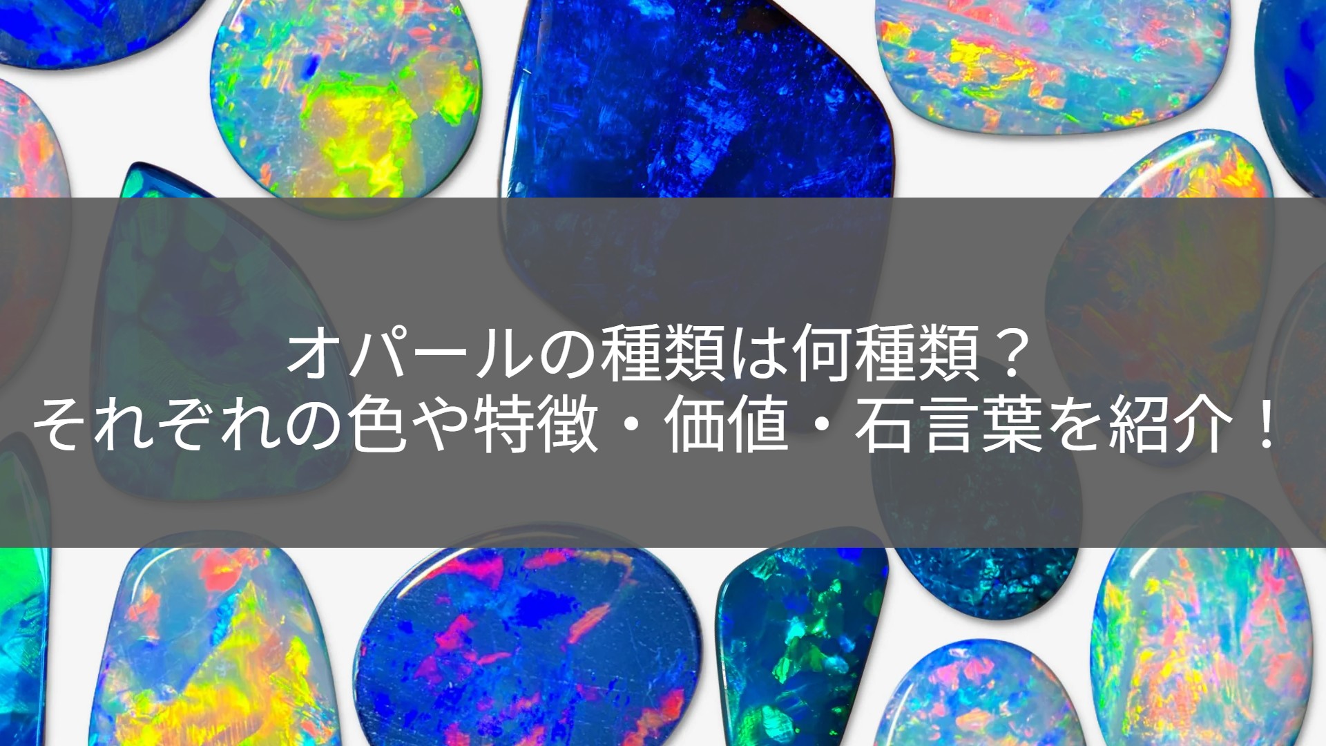 オパールという宝石をご存じですか?10月の誕生石でもあり、宝石好きなら一度は耳にしたことがあるでしょう。多くの人が思い浮かべるのは、乳白色にゆらめく独特の輝きを放つタイプだと思います。ですが実は、あのイメージは数あるオパールのうちの一種類にすぎません。 オパールには驚くほど多くの種類があり、普段何気なく目にしていた宝石の中にもオパールが隠れていたかもしれません。今回はその中から特に人気の10種類を厳選してご紹介します。「オパールってそんなに種類があるの?」と驚く人もいるでしょうが、新しい発見がきっとあるはずです。 さらにオパールの価値基準や偽物についても解説しますので、購入を考えている方はぜひ参考にしてみてください。 1.オパールは大きく分けると2種類 オパールは大きく分けると2種類に分けられます。その違いは、遊色効果があるかないかです。 遊色効果とはオパールに見られる特殊な効果で、ゆらゆらと揺らめく水面のような輝きのことを言います。この揺らめきのある石がオパールだと思っている人も多いですが、実はそうではありません。遊色効果のないマットな質感のオパールもあります。オパールは、遊色効果のあるプレシャスオパールと遊色効果のないコモンオパールの2種類に分けられるのです。 プレシャスオパールとコモンオパール、それぞれの特徴を詳しく見ていきましょう。 1-1.遊色効果が美しいプレシャスオパール オパールは二酸化ケイ素と水でできたケイ酸塩鉱物という鉱物の一種です。オパールは海の中でできる物質で、海中のシリカという物質と水が結びついてできています。そのシリカの粒の大きさや並び方はさまざまです。それによって、遊色効果が出るか出ないか、遊色効果の輝きの色やパターンなどが変化します。 遊色効果にとって重要なのは、シリカの粒の大きさです。シリカの粒が大きく、規則正しく並んでいる物が遊色効果のあるプレシャスオパールになります。オパールといえば遊色効果というイメージは根強く、とても人気のあるオパールです。 1-2.石の色が楽しめるコモンオパール 遊色効果がなく石自体の色を楽しめるのがコモンオパールです。コモンオパールは遊色効果がないので「オパールっぽくない」と思う人も多いでしょう。ですが、実は産出量はプレシャスオパールよりも多く、パワーストーンとして使用されたり、メインとなる宝石に添えられた脇石として使用されることもよくあります。いろんな宝石が使用されているジュエリーの中の、たくさんある石のひとつであることも多いです。知らないうちにコモンオパールを持っていた、ということもあるかもしれませんよ。 ミルキーでかわいらしい色合いの石も多く、実は隠れた人気のある宝石です。 2.人気のオパール10種類を紹介! オパールは色や輝き、形などでさまざまなタイプに分けられ、細かく見ると100種類以上に分けられます。そのすべてを知っておくことはとても困難です。 そこで今回は、たくさんあるオパールの中から特に有名な物や人気のある種類のオパールを10種類ご紹介します。ほとんどの人は10種類のオパールさえ知らないので、これだけでも知っておけばかなり「オパールに詳しい人」になれると思いますよ!今までは知らなかった発見もあるかもしれません。それぞれがとても個性的で魅力があるオパールばかりですので、ぜひ自分の好きなオパールを探してみてくださいね。 2-1.ホワイトオパール ホワイトオパールは、遊色効果のあるプレシャスオパールのひとつです。その名の通り石そのものがやわらかい白色をしています。優しい乳白色に映える遊色効果が上品な輝きが、ホワイトオパールの一番の魅力です。オパールと聞くとまず一番にホワイトオパールを思い浮かべる人も多いでしょう。ホワイトオパールは流通量も人気もあり、ショップでもよく見かける宝石です。 ホワイトオパールは産出量が多く、価格には幅があります。比較的お手頃な1万円以下のジュエリーも高価できちんとした数十万円のジュエリーもあり、選んで買えるのは嬉しいですね。 ホワイトオパールは石自体の色が不透明か半透明のホワイトです。白い地色の上で遊色効果が美しい虹色に見えるので、「虹色石」という和名で呼ばれることもあります。大きなかたまりで産出されることも多いので、存在感のあるホワイトオパールのジュエリーに加工されることも多いです。オパールは大きくても派手すぎず上品なので、大ぶりのジュエリーを探してみるのもいいかもしれませんね。 ホワイトオパールの石言葉は「純真無垢」「隠された才能」などです。 2-2.ブラックオパール ブラックオパールはプレシャスオパールの一種で、地色がブラックからグレーの宝石です。不透明から半透明まで幅があり、地色によって価値も雰囲気も変わります。もっとも評価が高いのは、透明感のない真っ黒な地色に遊色効果が鮮やかに現れるタイプで、その神秘的な
