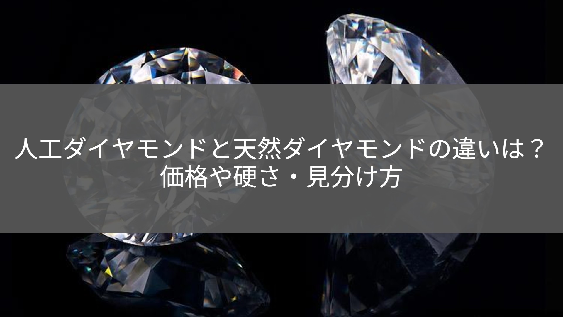 透明に輝くダイヤモンドは、多くの人の憧れです。普段使いのジュエリーとしてはもちろん、婚約指輪や結婚指輪として選ばれることも多いでしょう。ですが実際に探してみると価格が高く、購入をためらった経験がある人もいるかもしれません。そこで注目されているのが「人工ダイヤモンド」です。 「人工」と聞くと偽物を想像する人もいますが、ガラスやプラスチックの模造品とはまったく異なります。人工ダイヤモンドは天然と同じ炭素構造を持ち、ジュエリーとして実際に使われている立派な宝石です。 この記事では、人工ダイヤモンドと天然ダイヤモンドの違いや見分け方、硬さや価格の差について解説します。また、キュービックジルコニアやモアサナイトといった類似石との違い、婚約指輪や結婚指輪に人工ダイヤモンドを選んでも良いのか?といった疑問にもお答えします。 結論から言うと、人工ダイヤモンドと天然ダイヤモンドの違いは、希少性と価格、そしてエシカルなダイヤモンドだという点です。 どういうことか、詳しく解説していきますので、ぜひ最後まで読んでください。 1.人工ダイヤモンドと天然ダイヤモンドの違い 人工ダイヤモンドには天然ダイヤモンドと違うところもありますが、同じところもあります。他のダイヤモンドに似た石や模造ダイヤモンドと違う点はそこです。人工ダイヤモンドは天然ダイヤモンドと同じところは、成分や硬さです。そのため他の石とは別格に扱われます。その点についても詳しく解説しますので、きちんと理解しておくようにしましょう。 ちなみに上記の画像は左が「天然ダイヤモンド」右が「人工ダイヤモンドです」! 1-1.見た目の違い まず気になるのは、見た目の違いですよね。見るからに人工ダイヤモンドだとわかるようでは、あまり購入したい気持ちにならないでしょう。 結論から言うと、人工ダイヤモンドと天然ダイヤモンドに一目でわかるような見た目の違いはありません。ですがまったく同じというわけでもないので、注意が必要です。一言で言うと、人工ダイヤモンドは「きれいすぎる」と言えるでしょう。 天然ダイヤモンドは地球の奥深くで数千年から数億年もの長い時間かけてできあがります。その間にダイヤモンドの周囲ではさまざまな環境の変化があり、傷がついたり異物が入り込んだりするのです。ところが人工的に作られるダイヤモンドには、そういったことはありません。透明度が高く異物もほとんどない人工ダイヤモンドはとても美しいのですが、それがかえって天然ダイヤモンドとの違いになってしまうのです。 1-2.希少性の違い 石が宝石と呼ばれるには3つの条件が必要です。それは「美しさ」「硬さ」そして「希少性」です。どんなに美しく硬い石でも、道端に転がっているようなありふれた石であれば宝石とは呼ばれません。 天然ダイヤモンドは出来上がるまでに数千年以上もの時間がかかります。しかも簡単に採掘できるものではありません。そのためとても希少性が高いのです。 対して人工ダイヤモンドは数日から数週間と比較的短時間で生成することができ、量産することもできます。そのため人工ダイヤモンドは天然ダイヤモンドに比べると、希少性はとても低いのです。とはいえ、もちろん人工ダイヤモンドもありふれた石というわけではないので、宝石であることに変わりはありません。 1-3.価格の違い ダイヤモンドを購入する時に一番ネックになりやすいのが、価格ではないでしょうか。とても素敵なジュエリーがあっても、この金額は出せない…と残念な思いをしたことがある人は多いと思います。それを解決してくれるのが、人工ダイヤモンドです。先ほど解説した通り、人工ダイヤモンドは天然ダイヤモンドに比べて希少性がとても低いという特徴があります。そのため、同じくらいの輝き、同じくらいの大きさの天然ダイヤモンドと比べても人工ダイヤモンドは半額ほどの値段で購入することができるのです。 この価格の違いは大きく、それを理由に人工ダイヤモンドを選ぶ人はたくさんいます。価格は安いですが見た目は誰でもわかるほどの違いではないので、特に気にしないという人も多いのです。 1-4.成分や硬さは同じ 有名なキャッチコピーに、「ダイヤモンドは永遠の輝き」という物があります。ダイヤモンドで有名なデビアス社がダイヤモンドに付けたコピーで、とても硬くて耐久性が高いダイヤモンドと変わらない恋人や夫婦の絆をかけあわせた、人の心に残る言葉です。その硬さ、耐久性はダイヤモンドの特徴のひとつと言えるでしょう。その特徴を、人工ダイヤモンドはしっかりと再現しています。人工ダイヤモンドが他のダイヤモンドに似た石や模造ダイヤモンドの違う点は、成分が天然ダイヤモンドとまったく同じであるというところです。ダイヤモンドの輝きにおいて重要な屈折率と分散度も天然ダイヤモンドと同じため、天然ダイヤモンドと変わらない輝きを見せてくれま