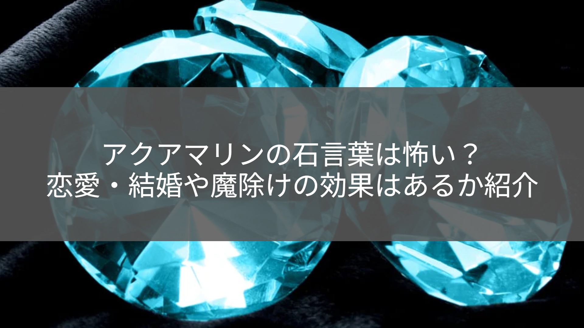 アクアマリンは淡いブルーが美しい宝石です。3月の誕生石としても有名で、知っている人も多いでしょう。アクアマリンは宝石の中では比較的お手頃な値段で、主張しすぎないのでさまざまなコーディネートにも合わせやすく、人気があります。 また、アクアマリンはパワーストーンとしても人気です。強い魔除けの効果や恋愛運アップの効果があると言われていて、スピリチュアル的な効果を期待して身につける人も珍しくありません。ところがアクアマリンの効果や石言葉は怖いらしいという噂があります。なぜそんなふうに言われているのでしょうか。 今回は、アクアマリンの怖いと言われている石言葉やスピリチュアル的な効果について、詳しく見ていきます。もちろんアクアマリンの基本的な情報もご紹介しますので、アクアマリンをまったく知らない人でも、最後まで読めば人に話せるくらい詳しく知ることができますよ!最後にはアクアマリンの豆知識もご紹介しますので、ぜひちょっとした話のタネにしてくださいね。 1.アクアマリンの石言葉 アクアマリンについて調べようとすると、なぜか「アクアマリン 石言葉 怖い」と検索候補に出てくるので、驚いた人もいるのではないでしょうか。 「アクアマリンの石言葉って怖いの?」「アクアマリンって、怖い石なの?」と不安になって、アクアマリンについて調べようとウキウキしていた気持ちが沈んでしまった人もいるかもしれませんね。 そこでまずはアクアマリンの石言葉は怖いのか、何か心配しなくてはいけないことがあるのかどうかを見ていきましょう。そもそも石言葉自体よくわかっていないという人のために、石言葉はどんなものかも詳しく説明します。 結論から言うと、アクアマリンの石言葉は怖くありません。ただ誤解されているだけなのです。なぜそのような誤解が生じてしまったのかについても解説しますね。 1-1.そもそも石言葉とは そもそも石言葉とはなんなのでしょうか。一言で言うと、石言葉とは宝石や鉱石につけられた、その石を象徴する言葉のことです。花に花言葉があるように、宝石・鉱石には石言葉があると思ってもらえればわかりやすいのではないでしょうか。 石言葉の起源ははっきりとわかっていません。というのも、石言葉の多くは自然発生的についたもので、誰が言い出したのか、いつから言い出したのか明確にはわかっていないのです。石にまつわる伝説や聖書の記載、色や経歴のイメージなどが元になって、多くの石言葉が付けられています。ただ、宝石や鉱石に見た目の美しさだけでなくさまざまな意味を見出すことは、エジプト文明やメソポタミア文明の時代から行われていたようです。ただの石ではない、特別なものだというイメージから、石言葉は生まれたのかもしれませんね。 1-2.アクアマリンの石言葉 アクアマリンの石言葉は「幸福」「聡明」「冷静沈着」などです。 西洋の言い伝えに「サムシングフォー」というものがあります。結婚に関する言い伝えで、花嫁が身につけると幸福になれるという4つの物を意味しています。結婚式で「何か新しいもの」「何か古いもの」「何か借りたもの」「何か青いもの」の4つを身に付けた花嫁は幸せになれるという言い伝えです。アクアマリンのジュエリーは、その「何か青いもの」として使用されることがよくありました。そのこともあってか、アクアマリンは「幸せな結婚の象徴の石」と呼ばれます。「幸福」という石言葉がついたのも納得できますね。 また、アクアマリンの透明度の高いブルーは気持ちを落ち着かせてくれる「聡明さ」「冷静沈着」を表しているともいわれます。ブルーというと、冷たい水のイメージで賢さ・クールさを感じさせます。 どれもアクアマリンにぴったりの石言葉です。 1-3.アクアマリンの石言葉が怖いと言われる理由 アクアマリンには「怖い」や「悪い」意味の石言葉はありません。むしろ「幸福」「聡明」など、前向きで美しい意味ばかりが込められています。ではなぜ「アクアマリンの石言葉は怖い」と言われることがあるのでしょうか。 ひとつは、「アクアマリンの石言葉が怖い」というよりも、「石言葉そのものがよく分からなくて怖い」と感じる人がいるからです。パワーストーンや占いに詳しくない人にとって、石言葉は少し神秘的で距離を感じるもの。意味が分からないからこそ、「何か怖い力があるのでは?」とイメージしてしまうのかもしれません。 もうひとつの理由は、アクアマリンの歴史にあります。かつてアクアマリンは“海の守り石”として、船乗りたちが航海のお守りにしていました。海の安全と無事の帰還を願って身につけられていたのです。しかし、天候も読めず位置も正確に分からない時代の航海はとても過酷でした。どんなにお守りを持っていても、命を落とす船員が多かったのも事実です。そのため、「アクアマリンを持っていた人が不幸になった」という印象だけが残り、いつしか“