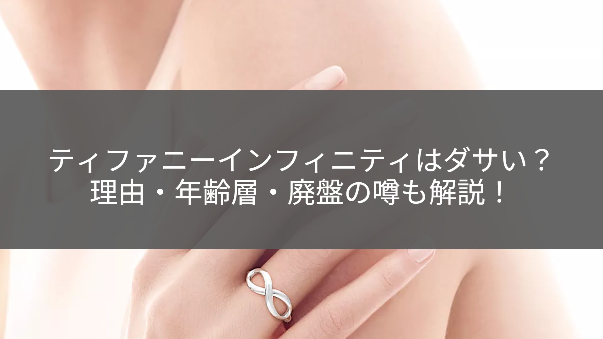 憧れのティファニーのジュエリー。でも、最近SNSや口コミでインフィニティシリーズが「ダサい」「もう古いのでは?」なんて声を目にして、購入を迷っていませんか?お気に入りのデザインを身につけたい気持ちはあるものの、流行遅れや年齢に合っていないのではという不安に共感する方も多いのではないでしょうか。 この記事では、インフィニティの歴史や意味、ダサいと言われる3つの理由、実際に選ばれている年齢層、いま人気のアイテム、購入前のよくある疑問まで詳しく解説したいと思います。 この記事を読むことで、流行や年齢を気にせず本当に自分が好きなものを身につける自信が持てるようになるでしょう。購入を迷っている方も、すでに持っている方もぜひ参考にしてください。 1.ティファニーのインフィニティとは? 出典:Tiffany & Co. ティファニーには、数多くのアイコニックなコレクションが存在します。その中でも、洗練されたデザインで人々を引きつけてやまないのがインフィニティコレクションです。ここでは、インフィニティコレクションが持つ魅力について紹介したいと思います。 1-1.「無限の愛と絆」という特別な意味 インフィニティの魅力は、「無限」を意味するその名の通り、終わりのない愛や固い絆を象徴する点にあります。デザインの核となっているのは、数字の8を横にしたような「∞」の記号です。古代から伝わるこのシンボルは、どこまでも続くループを描き、永遠のエネルギーや生命力を表すものとされてきました。 大切な人への贈り物として選ばれることが多く、言葉では伝えきれない深い愛情や、二度と離れることのない繋がりを表現するのに最適なアイテムでしょう。記念日や人生の節目に、心に秘めた想いを形にして届けることができるため、多くの方にとって特別な価値を持つジュエリーとなるのです。 1-2.流行に左右されない普遍的なデザイン インフィニティのもう一つの大きな特徴は、時代や流行に流されることのない、普遍的で洗練されたデザインです。そのフォルムは、流れるような優雅さとモダンな雰囲気を兼ね備えています。無駄をそぎ落としたシンプルなラインは、どんなファッションスタイルにも自然に溶け込み、さりげない上品さを演出します。 カジュアルな日常着から、ドレッシーな装いまで、場面を選ばずにコーディネートできるため、毎日身に着けられる心強いパートナーになるでしょう。一つで身に着けてもその美しい存在感が際立ち、他のジュエリーと重ね付けしても調和する柔軟性の高さも、長く愛用できる理由の一つです。 1-3.ティファニーが誇る高品質な素材と作り インフィニティの美しいデザインを支えているのが、ティファニーの厳格な基準をクリアした最高品質の素材と卓越した職人技です。インフィニティには、スターリングシルバー(銀の含有率が92.5%の銀合金)や、18Kゴールド、プラチナといった貴金属が使用されています。 スターリングシルバーは白く美しい輝きを放ち、18Kゴールドは豊かな色彩で肌を華やかに見せます。熟練の職人が一つひとつ丁寧に仕上げることで、滑らかな着け心地と完璧なフォルムが生まれます。時を経ても色あせない品質は、まさに世代を超えて受け継がれる一生物のジュエリーといえるでしょう。 2.ティファニーのインフィニティが「ダサい」と言われる3つの理由 インフィニティは、無限を意味する美しいシンボルが特徴的な人気シリーズです。一方で、「少しダサいかもしれない」という声が聞かれることも事実です。ここでは、インフィニティがダサいと言われる理由について、3つの側面から紹介したいと思います。 2-1.過去の流行アイテムというイメージ インフィニティがダサいと言われる理由は、過去に流行したアイテムという印象が根強い点にあります。かつて同ブランドの「オープンハート」が社会現象的な人気を博したように、特定のデザインが広く普及すると、時間が経つにつれて「一昔前のもの」という認識が広まる傾向があります。 インフィニティもまた、その象徴的なデザインゆえに多くの方が身につけていた時期があり、今となっては新鮮味に欠けると感じる方が少なくないのでしょう。 また、オンラインでの販売が中心で店頭で見かける機会がなくなったことで、すでに廃盤になった過去のアイテムだと誤解されやすく、流行に敏感な層からは「今さら感」があると見なされてしまうようです。 2-2.シンプルなデザイン故の安見え懸念 インフィニティのデザインは、シンプルすぎるがゆえに安っぽく見えてしまうという懸念も指摘されています。無限(∞)をモチーフにした流麗な曲線は、本来モダンで洗練された美しさを持っていますが、装飾が少ない分、人によっては物足りなく感じられるようです。 特に、ティファニーが用いる高品質な銀合金であるスターリングシルバー製のアイテムは、その輝きが逆に軽やかな印象を与え、重厚感を求める方からは安価なア