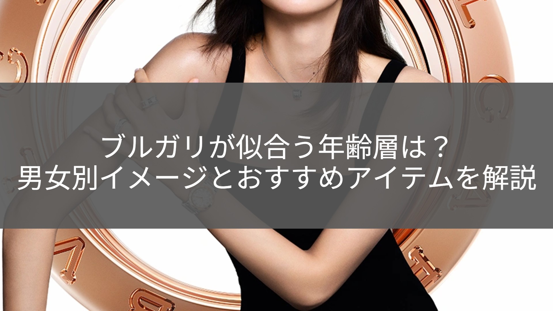 ブルガリのジュエリーは永遠の憧れですよね。しかし、その圧倒的な存在感ゆえに、「自分にはまだ早いかも?」「どの年代の人がつけているんだろう?」といった疑問や不安を感じる方も多いのではないでしょうか。 この記事では、ブルガリが似合う年齢層について、女性・男性それぞれのイメージや、年齢別のおすすめアイテムを詳しく解説したいと思います。また、ブルガリの歴史やデザインの魅力、購入時のよくある疑問点まで紹介したいと思います。ぜひ参考にしてみてください。 1.ブルガリが似合う年齢層は? 出典:BVLGARI イタリア・ローマで誕生したブルガリは、140年以上の歴史を持つ世界的な宝飾品ブランドです。その大胆かつ普遍的なデザインは、多くの人々を惹きつけてやみません。ここでは、ブルガリを愛用する人々の年齢層を紹介したいと思います。 1-1.メイン層は30代〜50代の女性 ブルガリの主な支持層は、30代から50代の女性たちと言われています。仕事や人生で経験を積み、自分自身のスタイルを確立した世代の女性たちが、ブルガリの持つ本質的な価値を理解し、見事に着けこなしています。古代ローマの芸術などから着想を得た、重厚で知的なデザインは、内面からあふれる自信や品格と響き合います。 また、一つのものを長く大切にしたいと考える審美眼を持つ世代にとって、ブルガリは人生の節目を彩り、共に時を重ねていくことができる特別なパートナーとなります。 1-2.20代は「自分へのご褒美」で購入が増加 20代の若い世代がブルガリを選ぶことも、決して珍しいことではなくなりました。キャリアのスタートラインに立ち、これからの自分に期待を込めて、特別な品として購入する方が増えています。 もちろん、20代にとっては高価な買い物であり、少し背伸びした選択と感じるかもしれません。だからこそ、最初のブルガリは、自分の頑張りを称える「ご褒美」であり、未来への投資という意味合いも持ちます。比較的手に取りやすい価格帯のアイテムから始めるのが、上手な取り入れ方と言えるでしょう。 2.ブルガリを身につける女性のイメージ ブルガリのジュエリーや時計を纏う女性は、周囲にどのような印象を与えるのでしょうか。ここでは、ブルガリを身につける女性が周りからどのように見られるのか、同性、異性、そしてビジネスの場面におけるそれぞれのイメージについて見ていきましょう。 2-1.同性からの印象:洗練された自立した女性 ブルガリを身につける女性は、「洗練された自立した人」という憧れの眼差しで見られる傾向にあります。流行を追いかけるのではなく、自分の価値観で本物を選び取る姿勢が、確固たる自分を持つ知的な姿に映るからです。 仕事や人生の節目に、自分への称賛の証としてブルガリを選ぶストーリーなども、多くの女性の共感を呼びます。高価なジュエリーを、自分自身の力で手に入れる姿は、まさに現代における自立した女性像そのものといえるでしょう。 2-2.男性からの印象:品格と知性のある大人 男性の目から見ると、ブルガリを身につける女性は、単に華やかなだけでなく「品格と知性を備えた大人の女性」として魅力的に映ります。その背景にはブルガリの歴史と、ローマの芸術性に根差したブランドイメージがあります。 一過性の流行に流されず、歴史的背景に裏打ちされた普遍的な美しさを持つアイテムは、ブランドの持つ芸術性やクラフツマンシップを物語っています。 3.ブルガリを身につける男性のイメージ 高級腕時計からジュエリー、香水に至るまで、幅広い製品を手がけるブルガリのアイテムを纏う男性は、女性の目にどのように映っているのでしょうか。ここでは、女性が抱くブルガリを纏う男性のイメージについて見ていきましょう。 3-1.ポジティブな印象:経済力と大人の色気 ブルガリを身につける男性は、経済的な余裕と大人の魅力を感じさせ、女性に好意的に映ることが多いです。ブランドのアイテムは決して安価ではないため、それを所有している事実は、安定した社会的地位や成功を収めている人物であると印象付けます。 また、単に高価なものを身につけるのではなく、ブランドの背景にある哲学や職人技への敬意を持ち、自分らしく楽しんでいる姿勢が、内面から滲み出る魅力となって女性の心を惹きつけるでしょう。 3-2.ネガティブな印象:キザで近寄りがたい ブルガリのアイテムは、その存在感の強さから、身につけ方によってはキザで威圧的な印象を与えてしまう場合があります。特に、ブランドロゴが大きくあしらわれたデザインや、複数のアイテムを同時に着用する「ジャラ着け」は、自己顕示欲が強い人物だと見なされかねません。 見る人よっては「ブランドの力に頼っている」という印象を与え、本人の魅力や個性をかえって隠してしまいます。 4.ブルガリが時代を超えて人々を魅了する理由 ブルガリはイタリアのローマで創業して以来、革新的なスタイルで世界中の人々を魅了し続けて