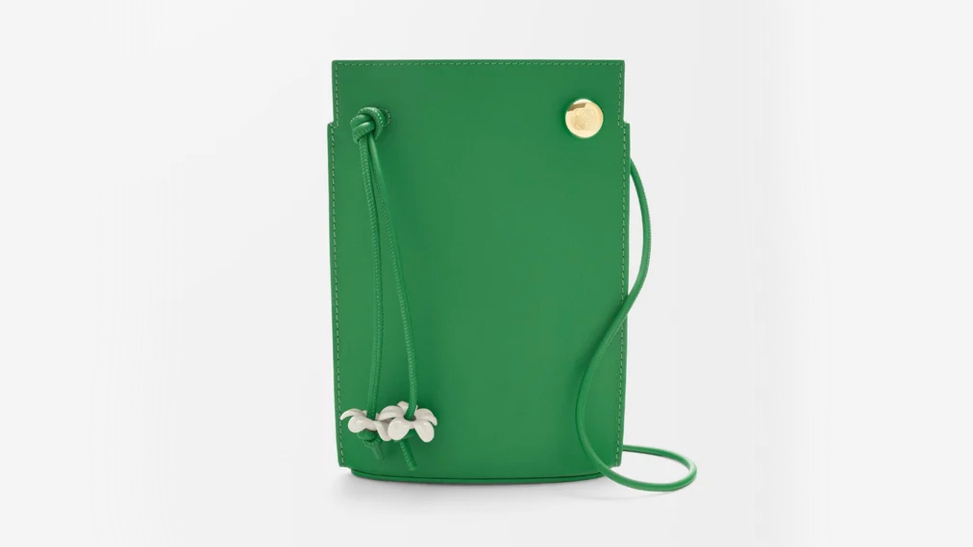 小ぶりの長方形フォルムが特徴の「ダイスポケット」。シンプルなデザインの中に、ロエベならではの柔らかなカーフスキンの質感と、Pebble(小石)のような金具ディテールがアクセントになっています。コンパクトながらもスマホや小物をしっかり収納でき、日常使いに最適です。