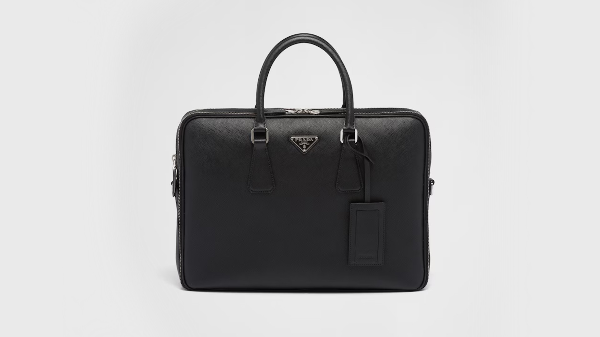ビジネスパーソンに最適なのが、サフィアーノレザーを使用したこのブリーフケースです。プラダ伝統の型押し素材であるサフィアーノレザーは、耐久性と耐水性を備えており、大切な書類やデジタルデバイスをしっかりと守ります。