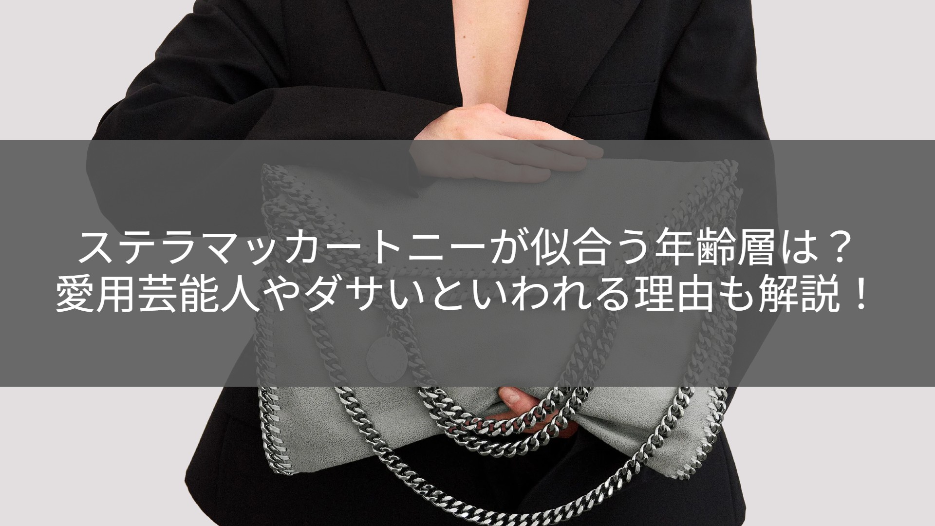 おしゃれな人が持っているステラマッカートニーのバッグや小物。上品なデザインと、どこかリラックスした雰囲気が素敵ですよね!しかし、いざ購入を考えると「自分には若すぎるかな?」「逆におばさんぽく見えない?」と、自分の年齢に合うかどうか、ふと気になりませんか。
