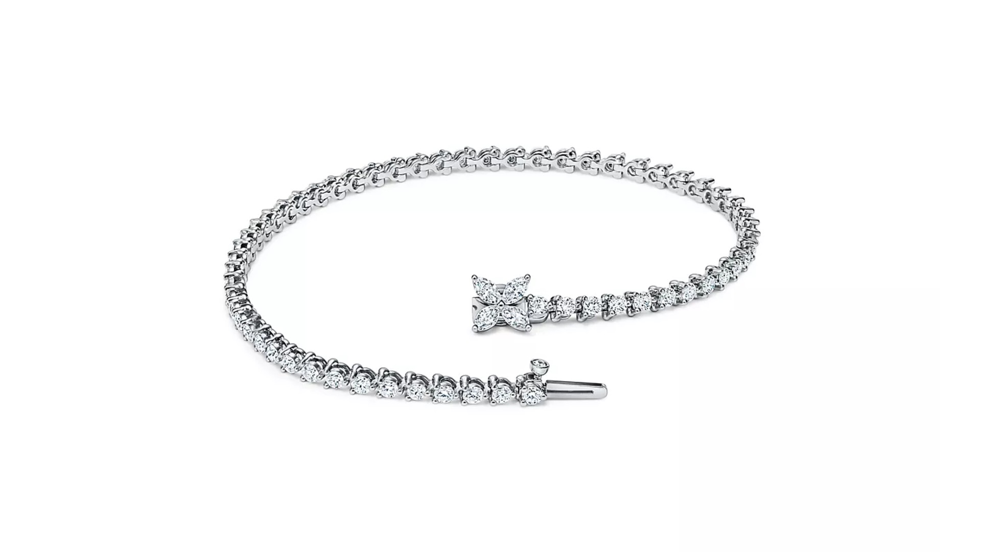 ラウンドブリリアントカットのダイヤモンドが途切れなくセッティングされた、時代を超えて愛されるクラシックなデザイン。ビクトリアを象徴するフローラルモチーフがアクセントになります。手首全体にラグジュアリーな輝きが放たれ、ドレススタイルにもぴったりの1本です。