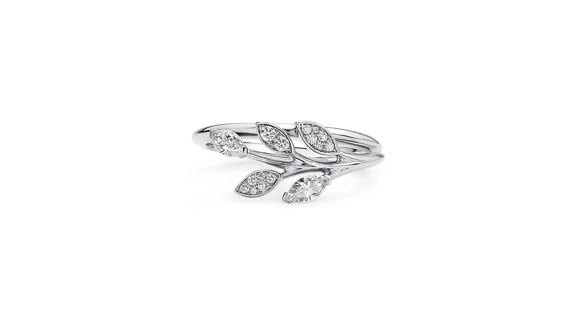 ダイヤモンドはすべてティファニーの厳しい基準をクリアした高品質なものを使用。特にマーキスカットはその形状からカットの技術力が必要で、職人の腕が光るポイントでもあります。