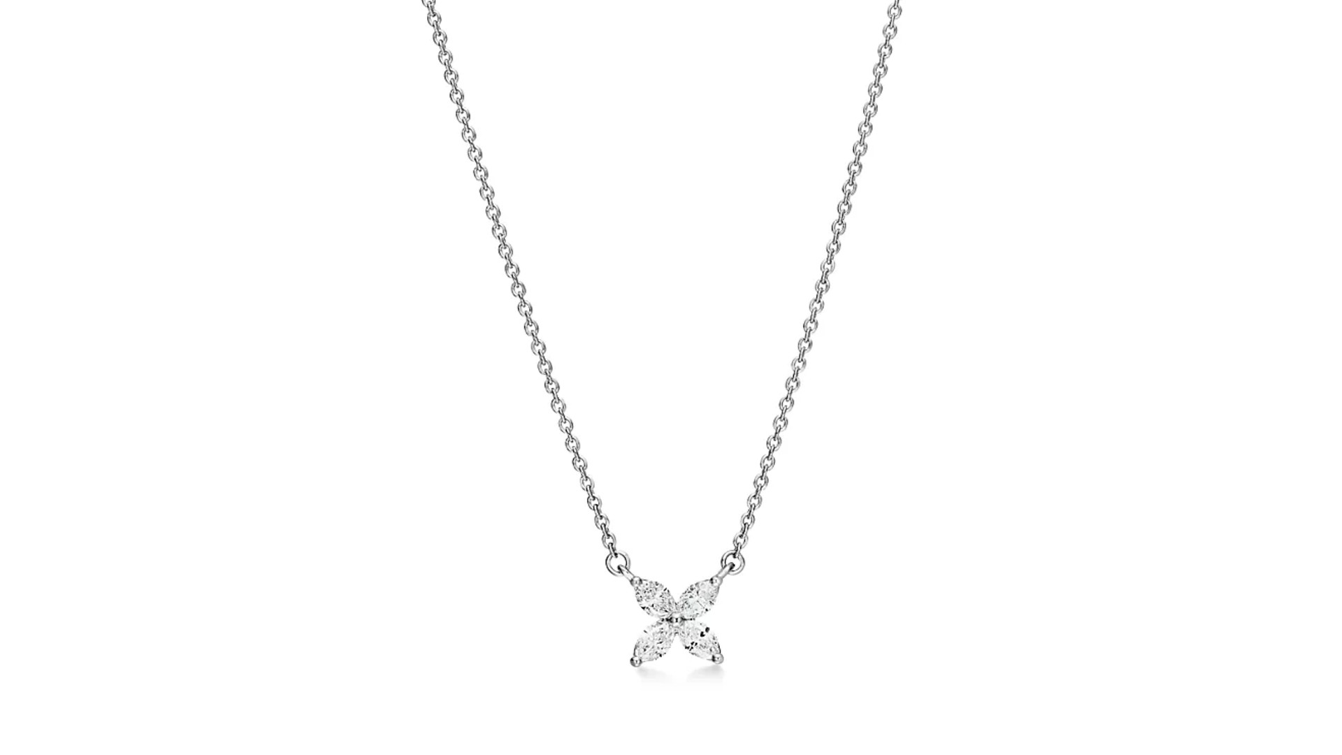 ティファニービクトリアのネックレス&ペンダントは、洗練されたモチーフが胸元で美しく輝き、上品な存在感を放ちます。