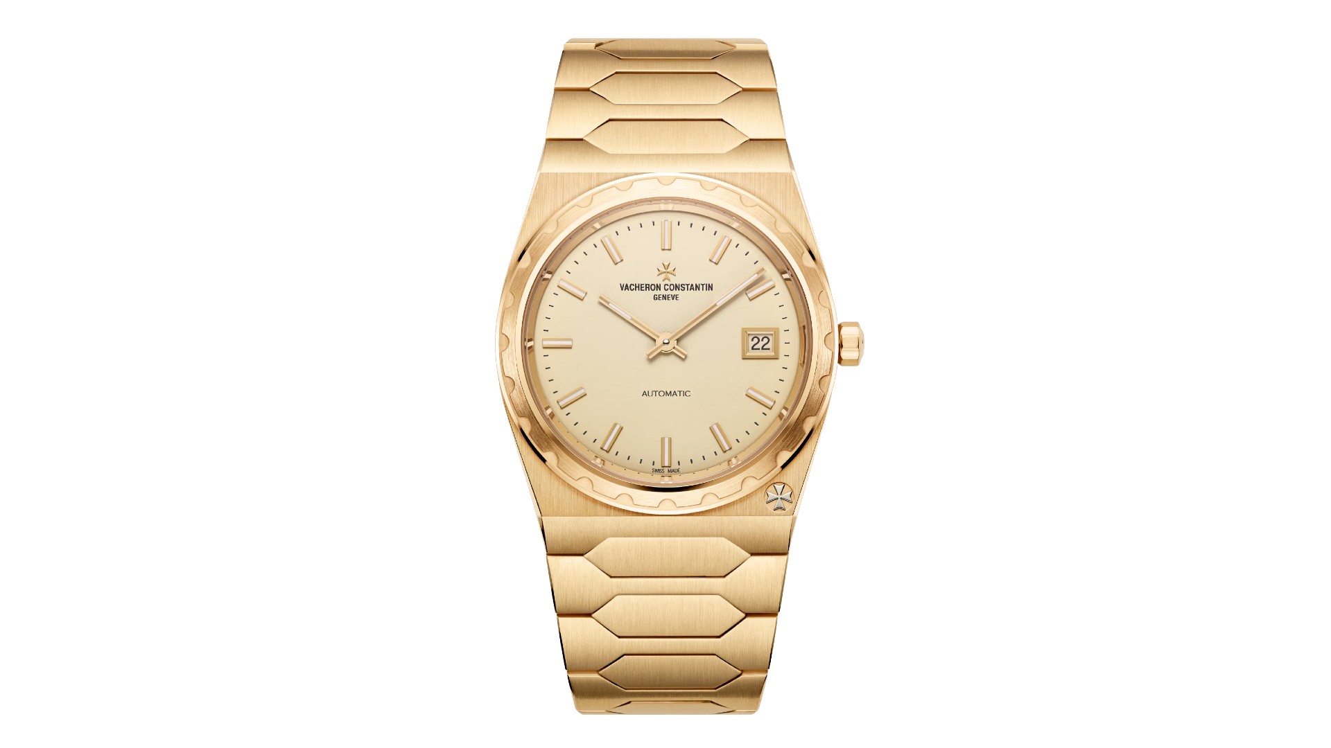 ケースサイズは37mm、厚さ7.95mmとコンパクトで、クラシカルな雰囲気をしっかりと残しているのが特徴。ケースとブレスレットには18Kイエローゴールドを採用し、一体型デザインによる美しいフォルムも魅力的です。
