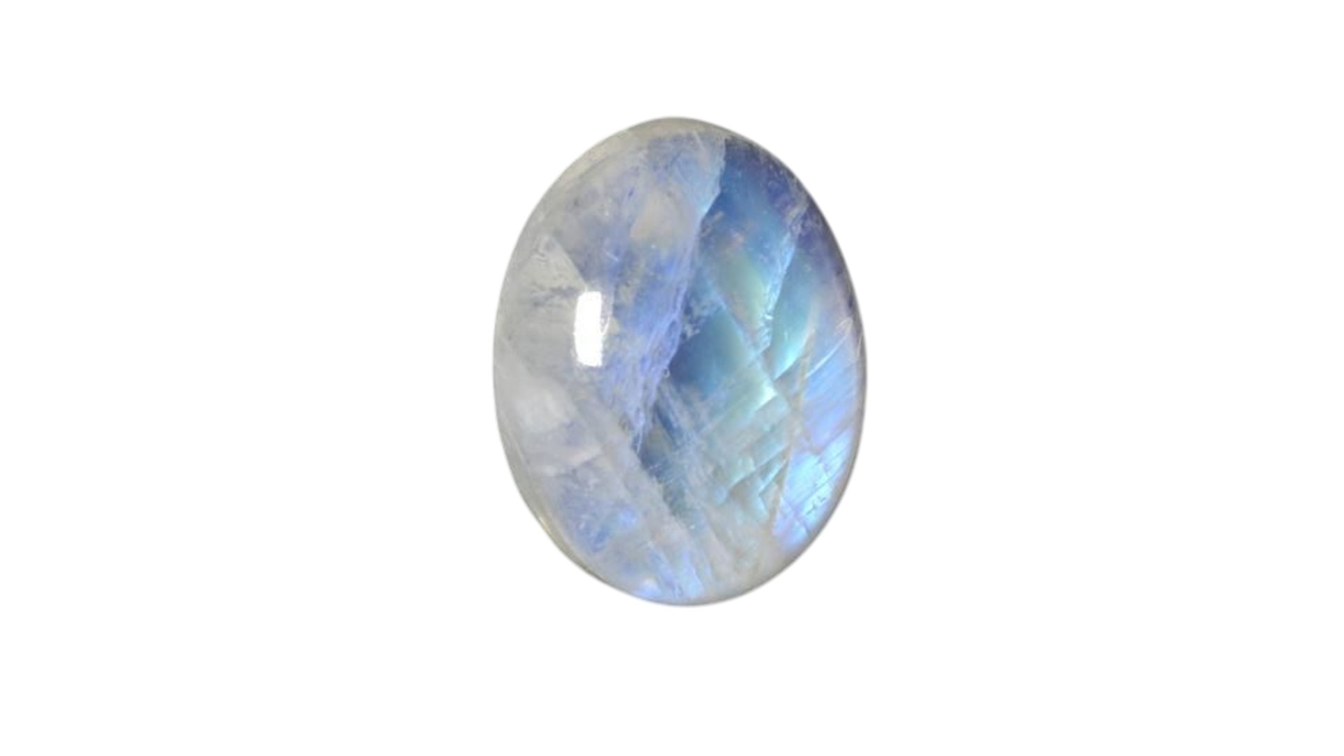 ムーンストーン(和名:月長石)は、透明から半透明の白い宝石で、内部に「シラー効果」と呼ばれる青白い光の帯が浮かぶのが特徴です。光の角度によって淡く揺らめくその輝きは、まるで夜空に浮かぶ月の光のよう。ブルーやオレンジなどさまざまな色合いのものもありますが、最も人気が高いのは白く神秘的なムーンストーンです。特に透明度が高く、シラー効果が強く見えるものは希少で、高い価値を持ちます。