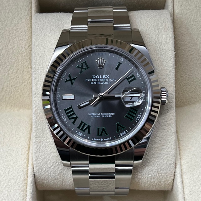 2017年に誕生したモデルの『ロレックス デイトジャスト Ref.126334』。ステンレス×ホワイトゴールドでつくられた高級感のある一本です。ダイヤルの外周に書かれたさりげないミニッツサークルからロレックスのデザイン性の高さが感じられます。中古市場でも人気のモデルとなっておりますので、お持ちの方はぜひ当社エステメに一度お持ち込みください!