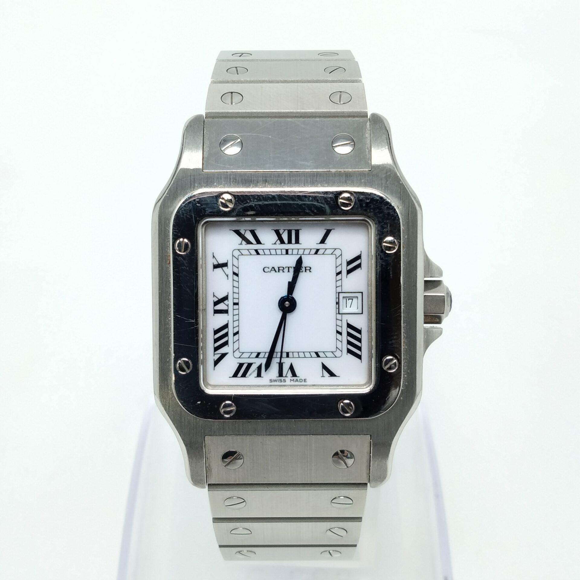 カルティエのマスト ヴァンドーム(型番:W1001853)をお買取りさせていただきました。ブランド買取店「ESTIME/エステメ」では、カルティエの買取を強化しています。査定では、ケースの変色やメッキ剥がれ、風防のキズ、リューズや針の動作状態、文字盤の焼けや劣化、クォーツムーブメントの作動確認、レザーストラップや尾錠の状態などを丁寧に確認しました。ヴィンテージモデルのため、年式や保存状態によって価格差が大きく、保証書や箱が揃っている場合はプラス査定となります。