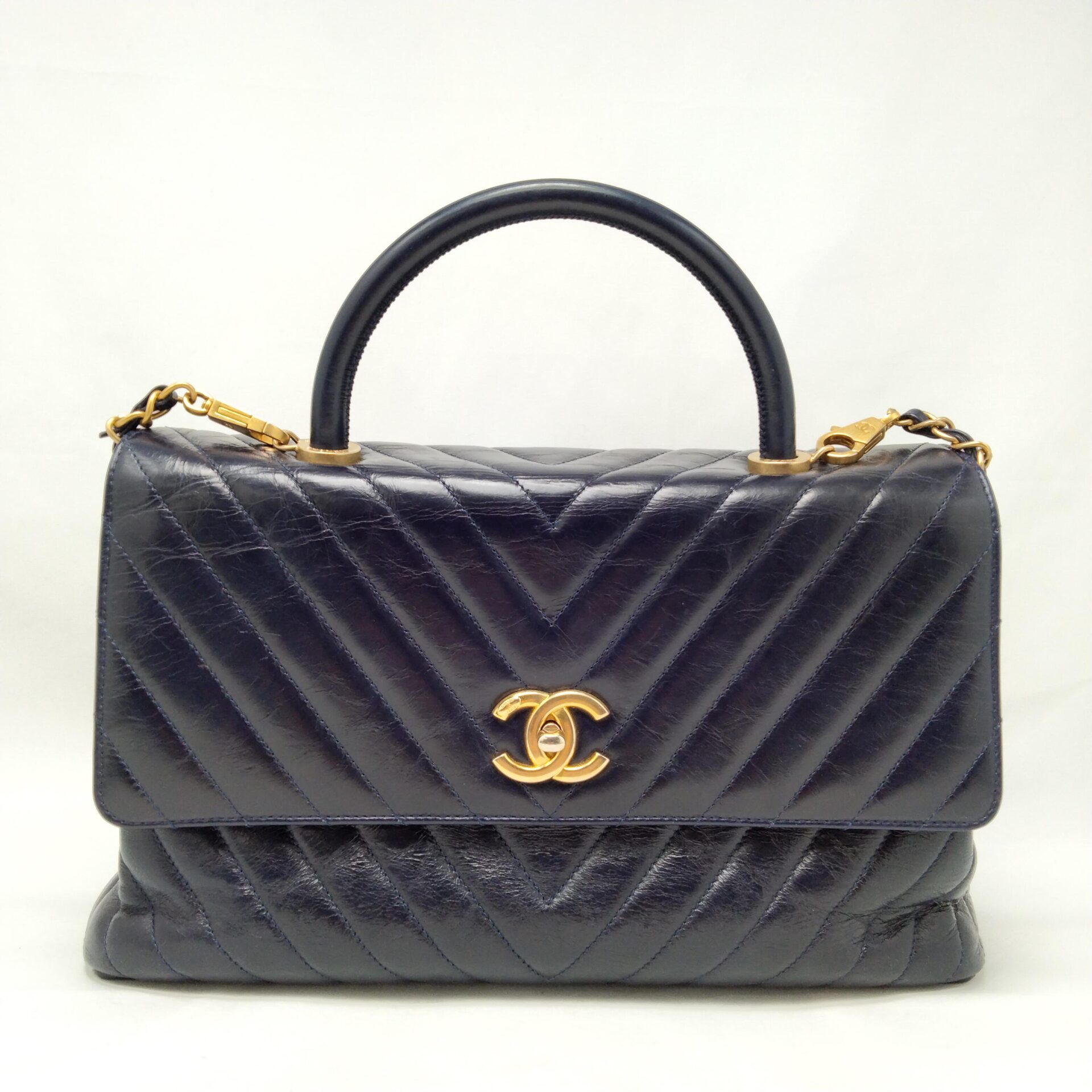 シャネル / シェブロン ココハンドル33 ラムスキン 2WAYハンドバッグ ネイビー