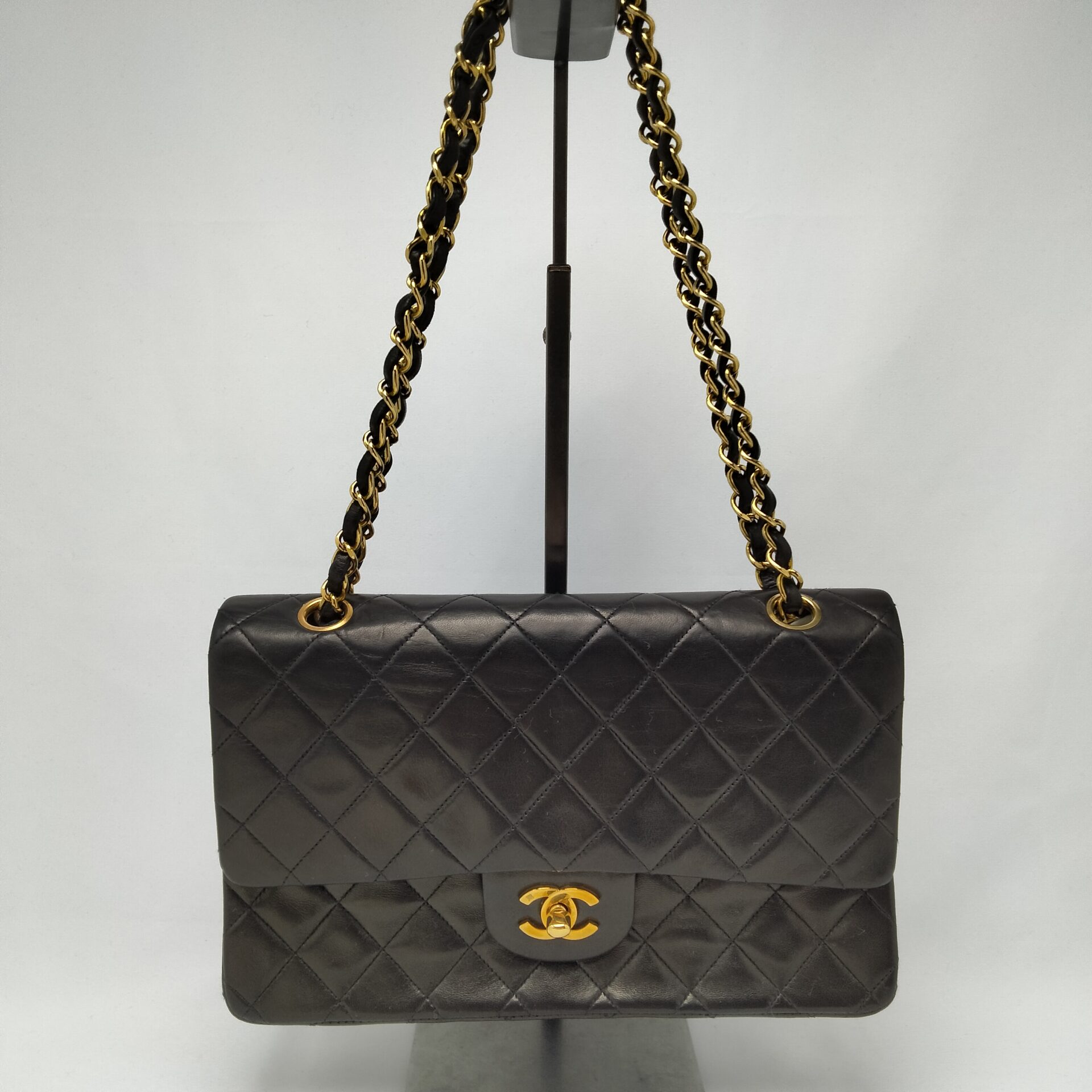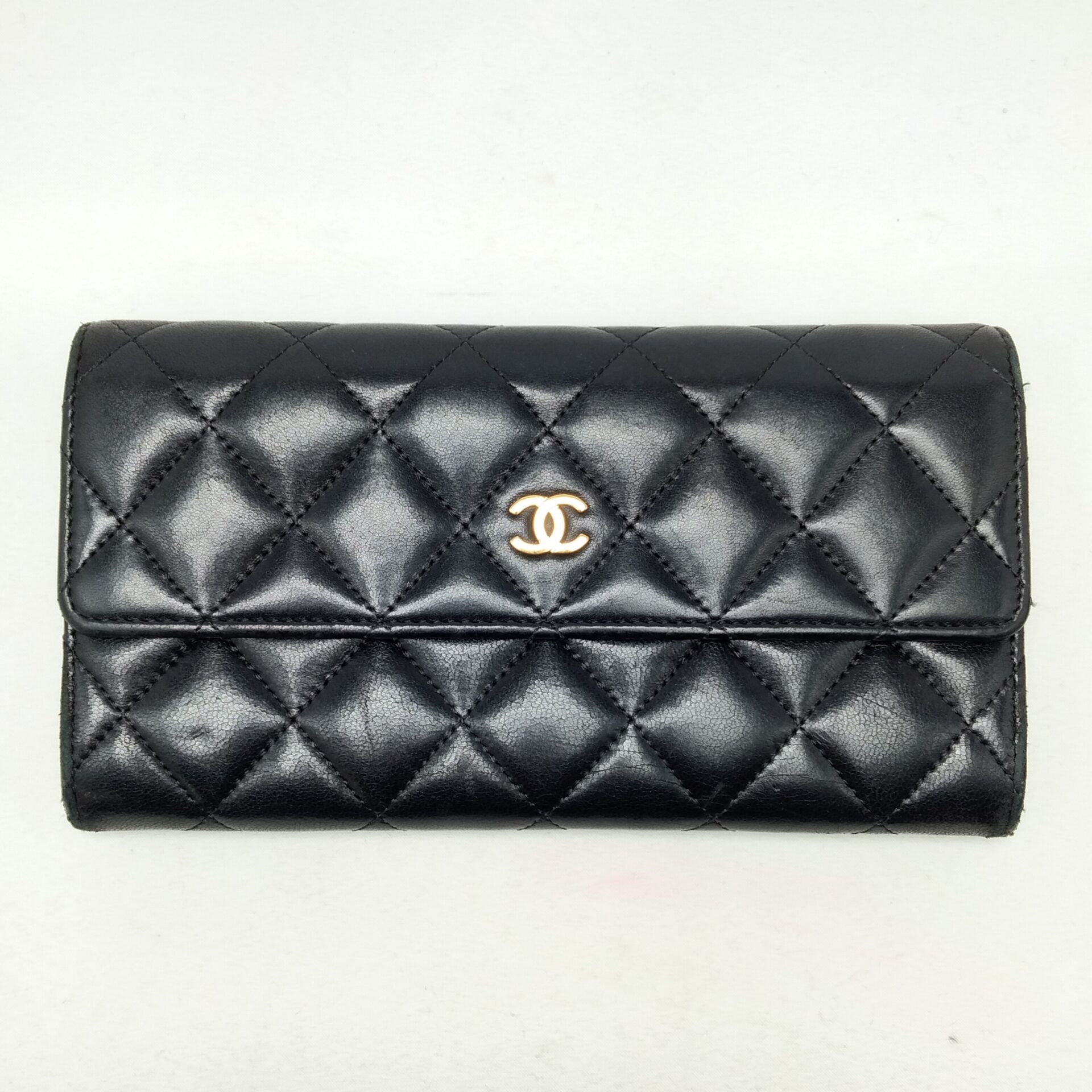 シャネル / マトラッセ ラムスキン シングルフラップ ダブルチェーンバッグ ブラック ゴールド金具