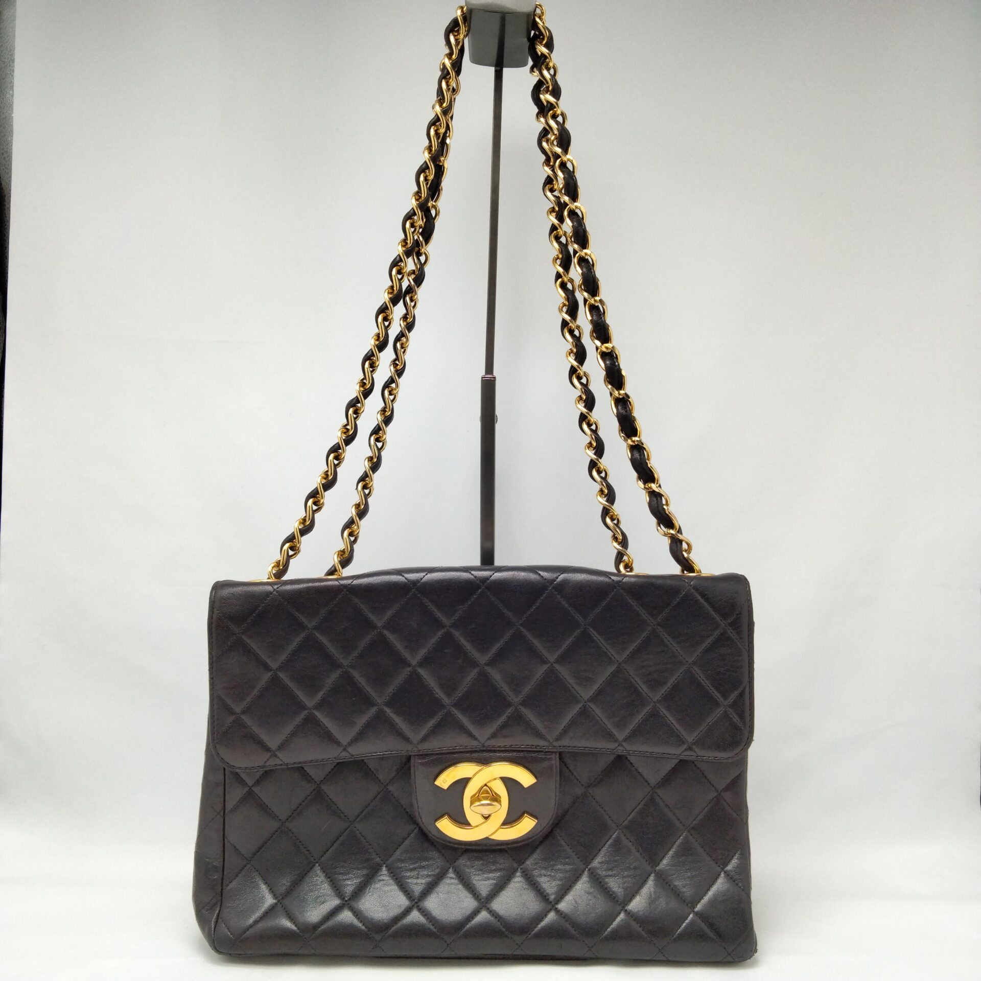 シャネル / デカマトラッセ30 ラージ ラムスキン シングルフラップ ダブルチェーンバッグ ブラック ゴールド金具
