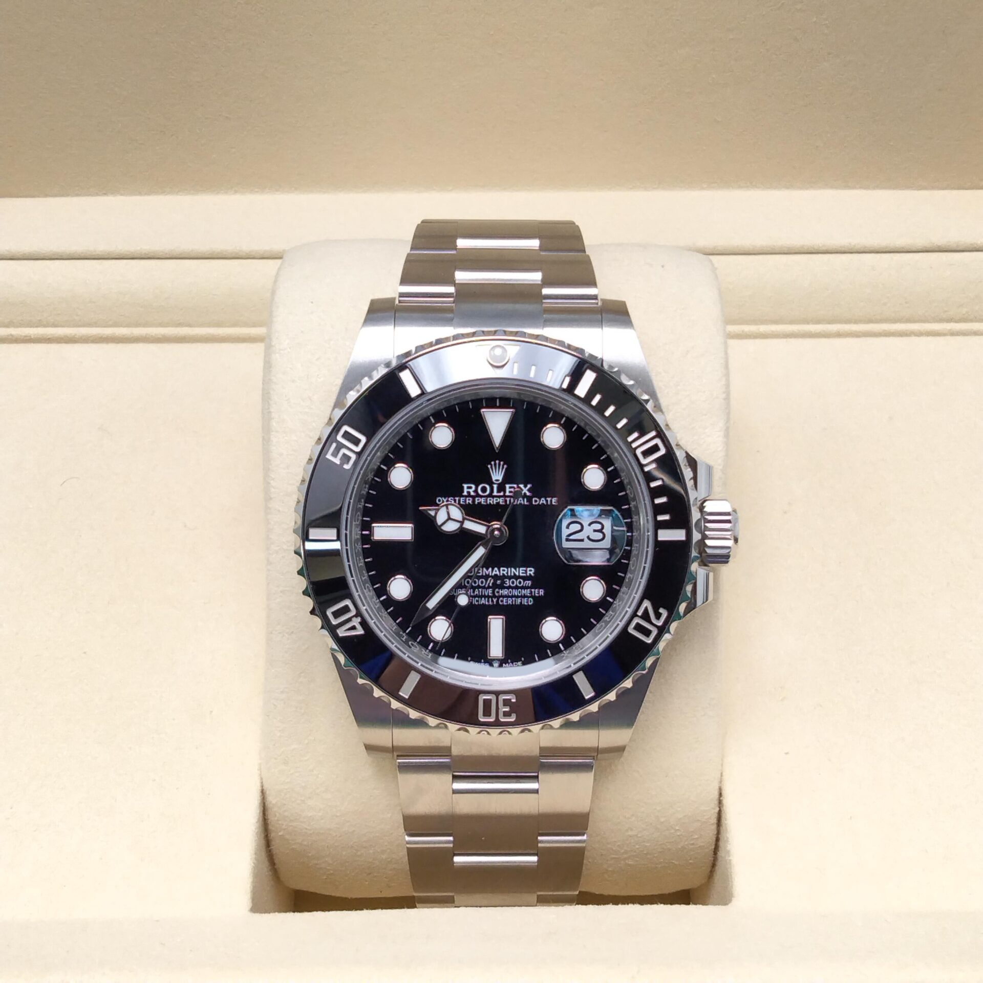 ロレックス サブマリーナ 126610LN 黒文字盤 をお買取りいたしました。査定では、ケースのキズの有無、風防のコンディション、文字盤や針の確認、ムーブメントの動作状況、ブレスレットや留め具の確認、付属品の有無、全体の使用感を確認しました。状態が良好な場合は高価買取が期待できます。