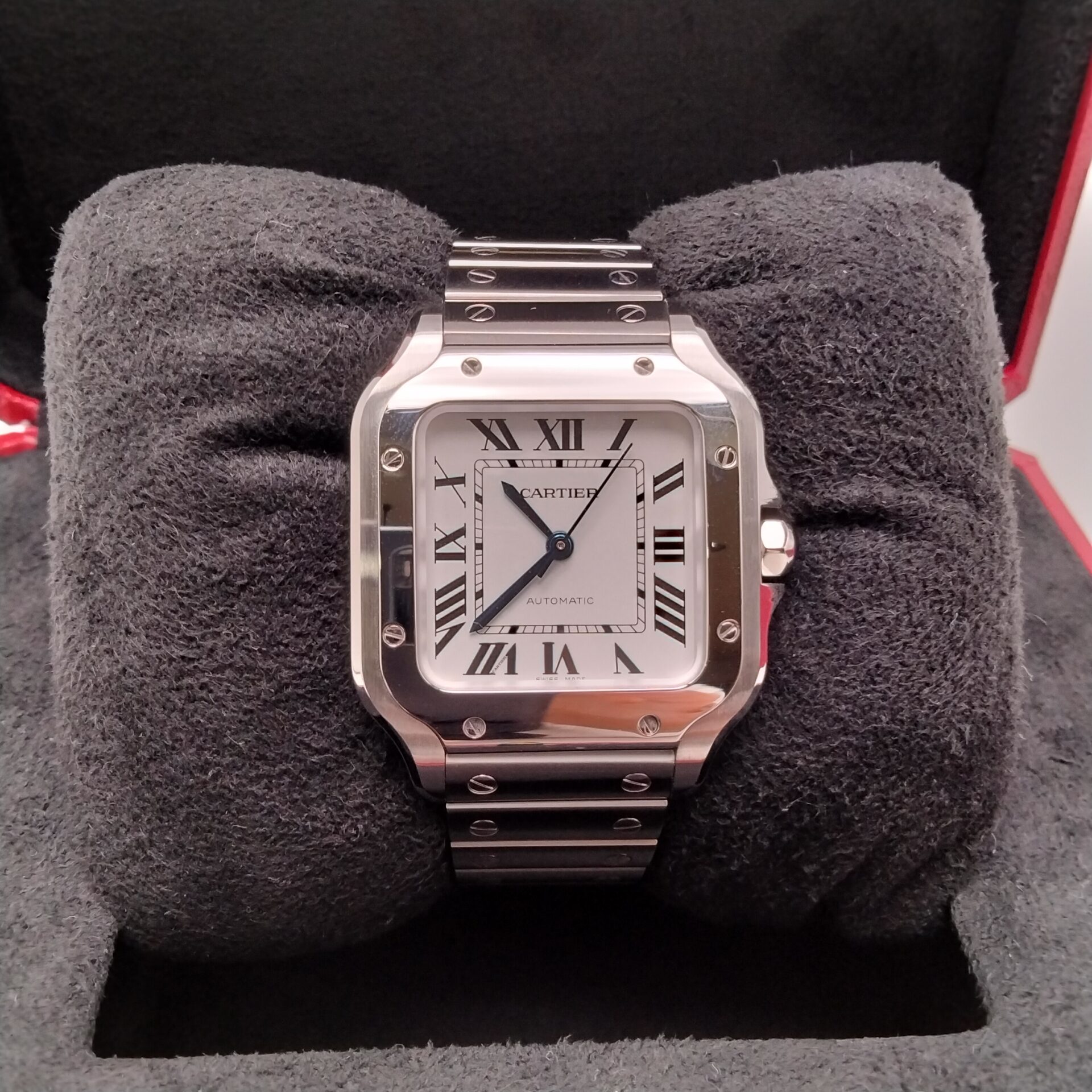 カルティエ サントス100 W20073X8をお買取りいたしました。査定では、ケースやブレスレットの状態、スレやキズの有無、ベゼルやビス部分のコンディション、文字盤や針の状態、ガラスの傷の有無、リューズ操作、動作状況、付属品の有無、全体の使用感を確認しました。全体の状態が良好な場合は高価買取が期待できます。