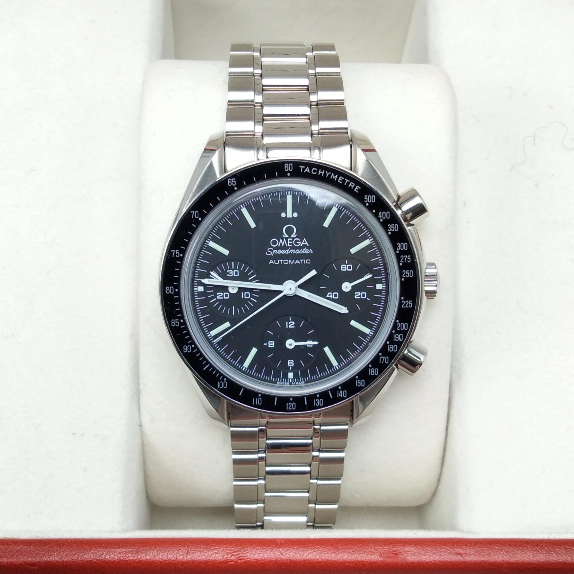 オメガ スピードマスター レーシング シューマッハレジェンド 3506.61 赤文字盤をお買取りいたしました。査定では、ケースやベゼルの状態、キズやスレの有無、赤文字盤や針のコンディション、ブレスレット全体の状態、バックル部分の使用感、動作状況、付属品の有無などを確認しています。限定や特別仕様モデルは文字盤カラーや仕様が評価に影響しやすく、状態が良好な場合は高価買取が期待できます。