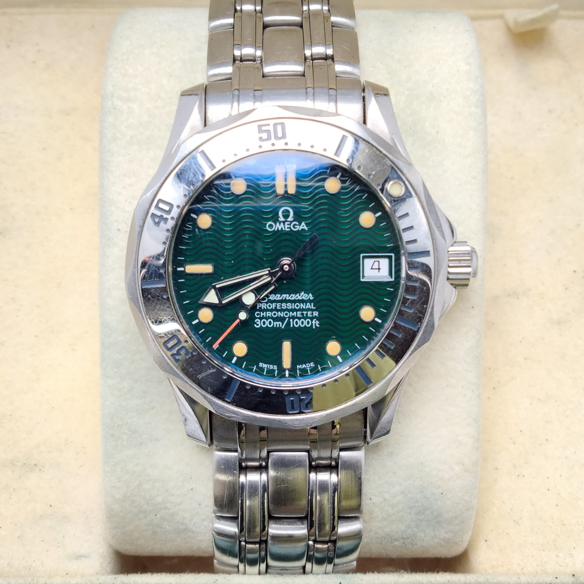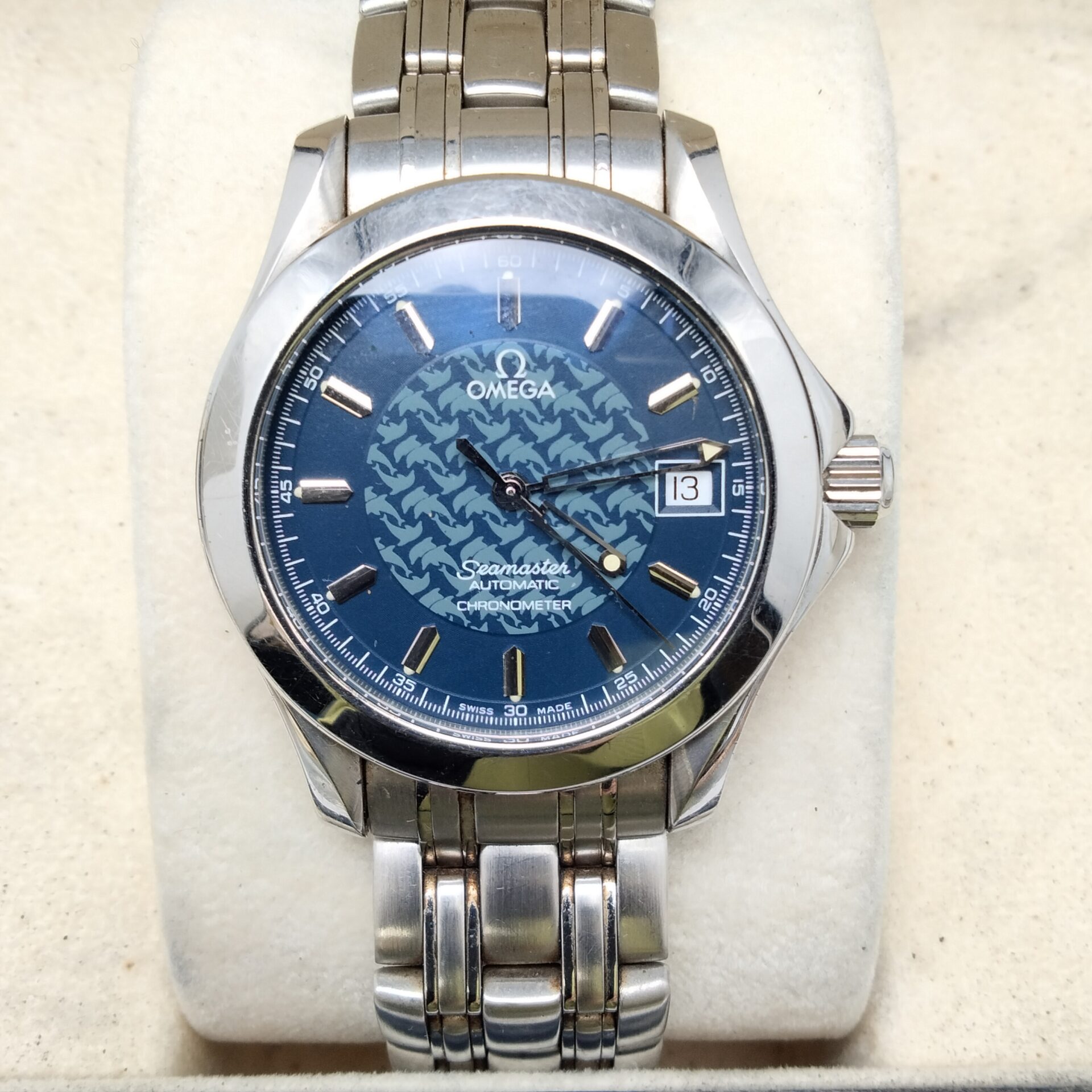 オメガ スピードマスターデイト 3210.50をお買取りいたしました。査定では、時計全体の状態やケース・ブレスレットのコンディション、キズやスレの有無、文字盤や針の状態、ガラスの状態、クロノグラフ機能の動作、リューズやプッシュボタンの操作感、バックル部分の状態、日常使用による使用感、付属品の有無などを確認しています。状態が良好な場合は高価買取が期待できます。
