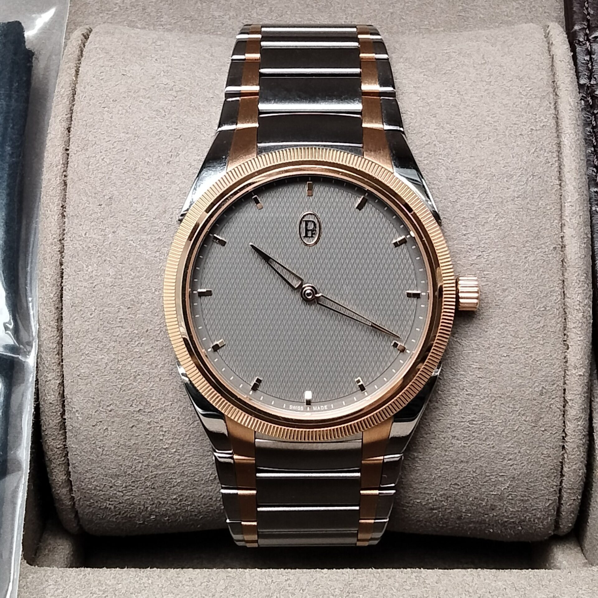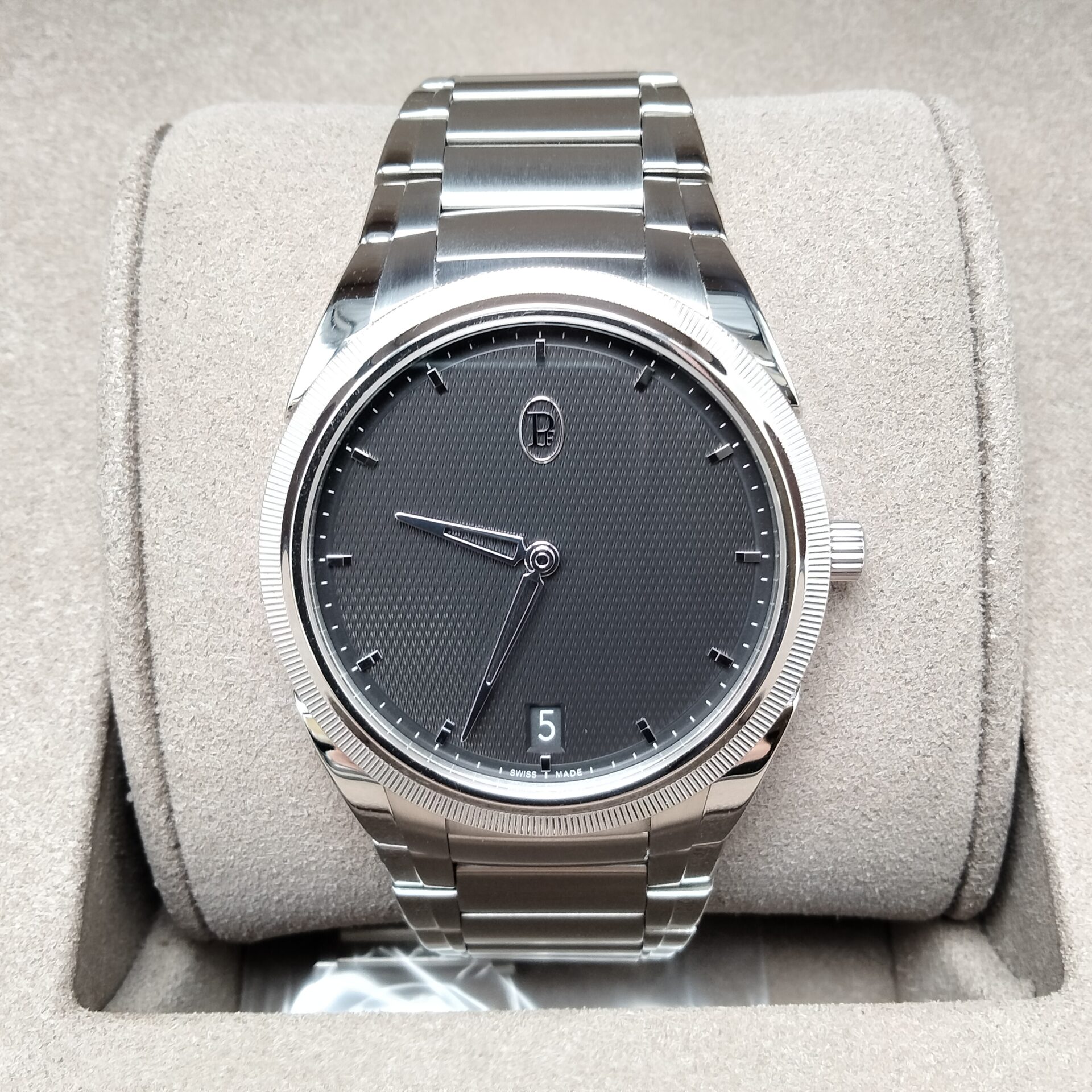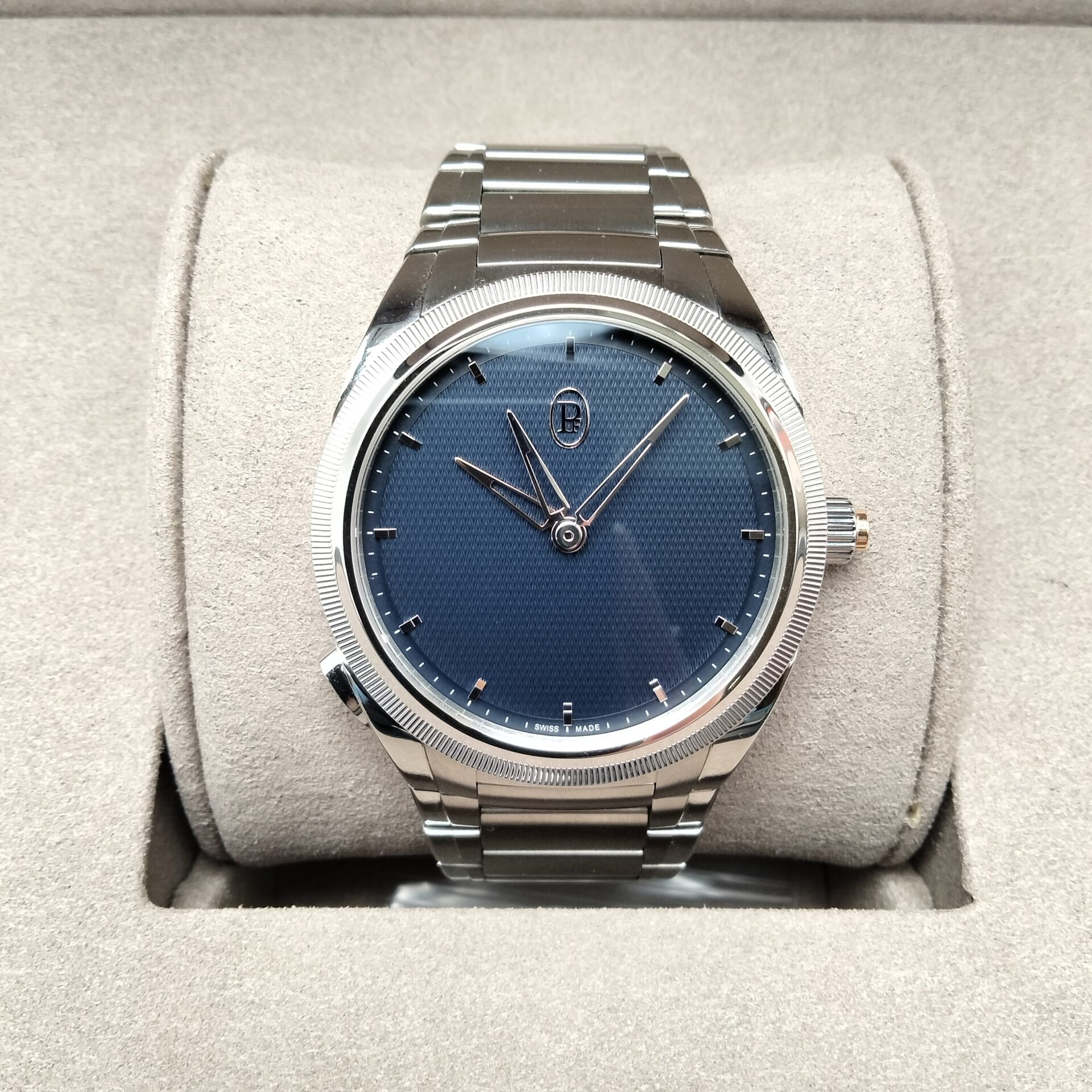 パルミジャーニ・フルリエ トンダ PF ミニッツ ラトラパンテ PFC904-1020001-100182をお買取りいたしました。査定では、ケースやベゼルの状態、キズやスレの有無、文字盤および針のコンディション、ブレスレット全体の状態、バックル部分の使用感、動作状況、付属品の有無を確認しています。状態が良好な場合は高価買取が期待できます。